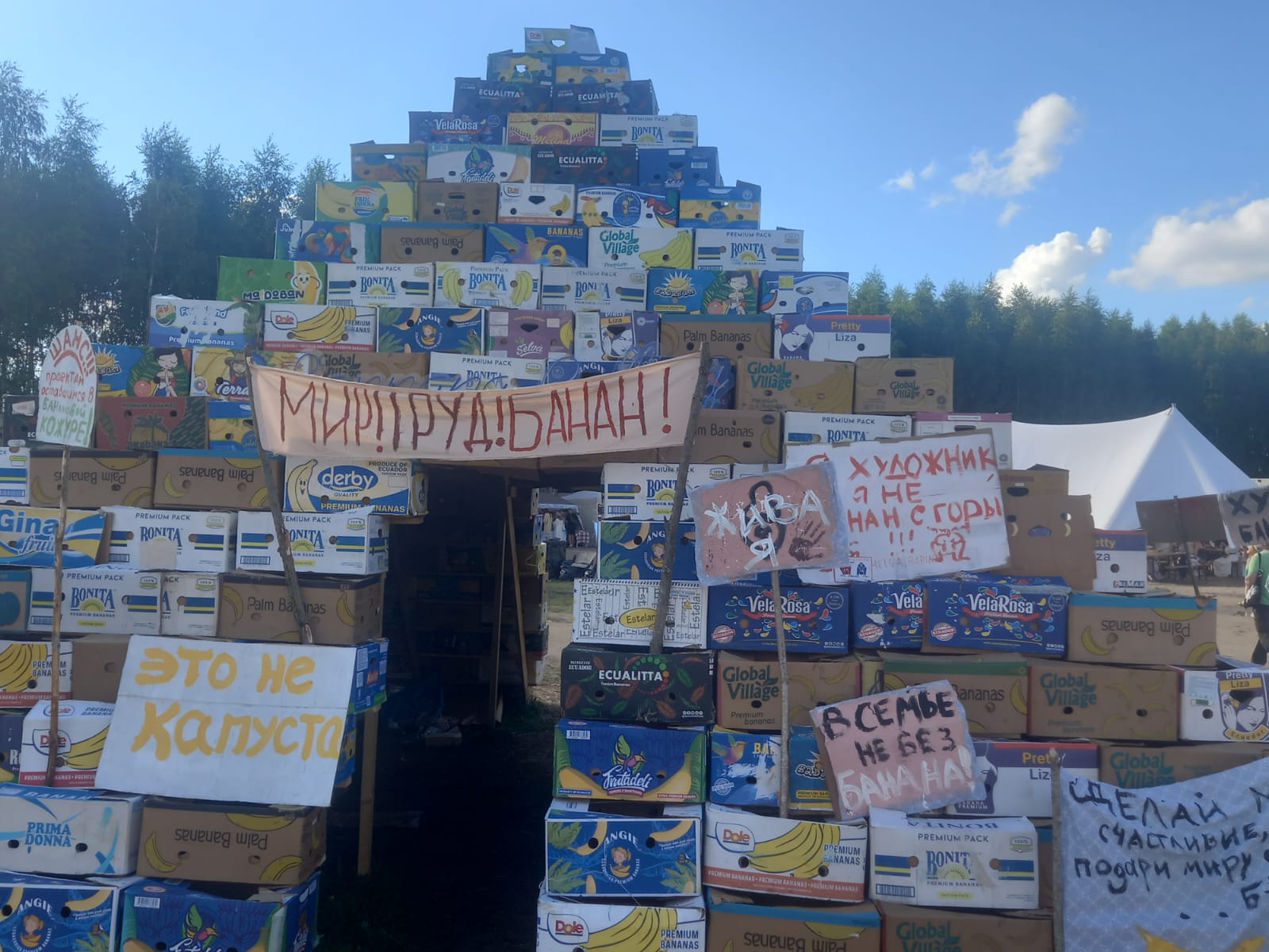 В этом году из тех же коробок соорудили так называемую «Пирамиду времени». В ней были собраны эскизы художников, отвергнутых «Архстоянием» за прошедшие 20 лет и ждущие своего признания. Тут же созданный «профсоюз отвергнутых художников» организовал шествие от пирамиды к площади церемоний с плакатами: «Желтая революция начинается с одного банана», «Я художник, а не банан с горы» или «Мир. Труд. Банан».