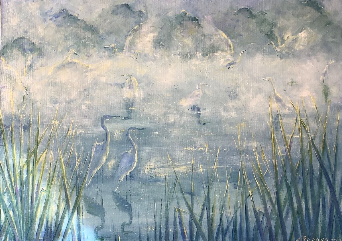 Неожиданно раздался звук сломанной ветки, и я заметила изящную серую цаплю, которая вспорхнула из камышей, грациозно приветствуя нас. Я вспомнила легенду о египетской птице Бенну, которую изображали в виде цапли. Бенну была богиней возрождения и жизни. Эта космическая птица обитала в стране вечного света, за пределами земного мира, там, где рождались боги и откуда они сходили в наш мир. В наш мир она приносила на своих крыльях дающую жизнь эссенцию «нике».