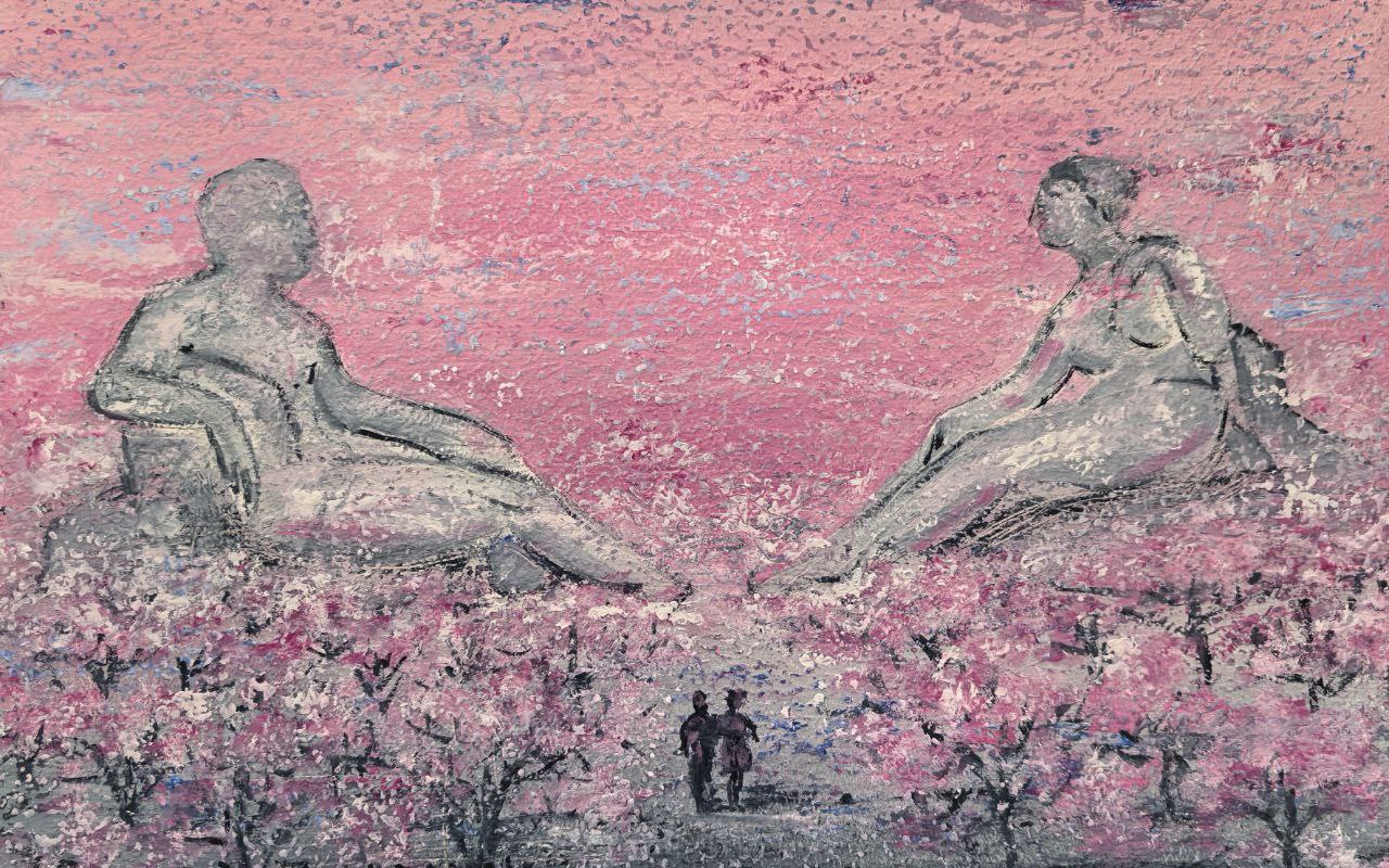 Случилось так, что субтропический Сочи прихватили морозы и выпал снег. Поздней ночью, когда все отдыхающие уже спали, в глазах прекрасных статуй, столько десятилетий холодно смотревших друг на друга, вдруг появилась теплота. Они смущенно улыбнулись друг другу и эта улыбка растянулась на всю ночь, пока не взошло солнце, а наутро замерли с улыбками на лице. Увы или к счастью, никто из гостей санатория не заметил изменения в их лицах, а Он и Она, неожиданно растопившие друг другу каменные сердца, продолжили влюбленно улыбаться. И вот в одну очень холодную ночь Он попытался приподняться на каменном постаменте и протянуть то ли руку, то ли накидку своей спутнице.