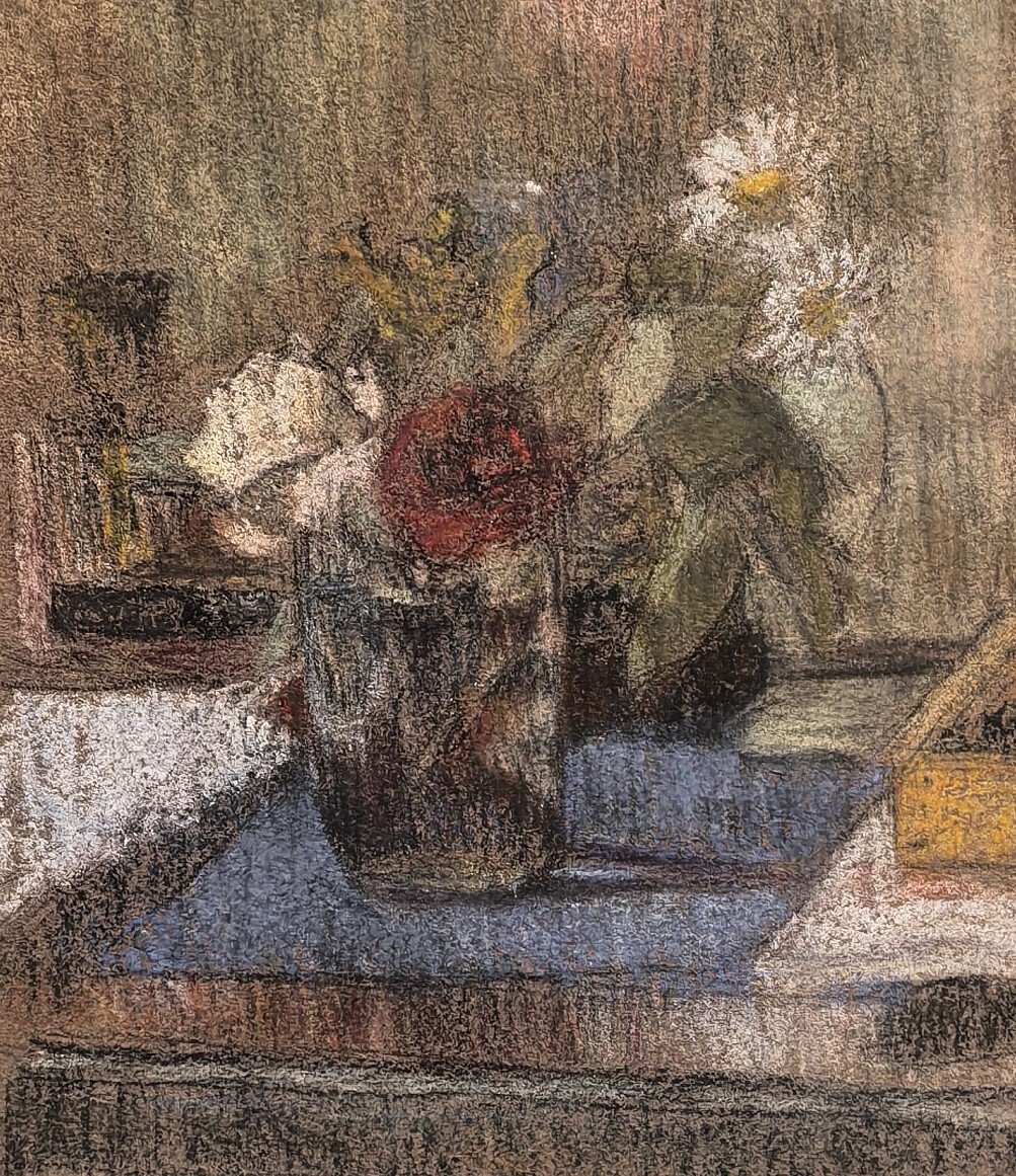 Осенью же, съехавшись в Москве, они воссоединялись. Рассматривая ранние пастельные работы Ларионова и Гончаровой на экспозиции в Пушкинском музее, порой трудно определить, какой из листов принадлежит руке Наталии, а какой — Михаилу. Кажется, что мягкая пастель рассыпается золотистой пыльцой по всему залу, донося ароматы трав, цветов и земли после дождя. И в этой концентрации любви и творчества, откуда-то из небытия слышатся два тихих голоса.