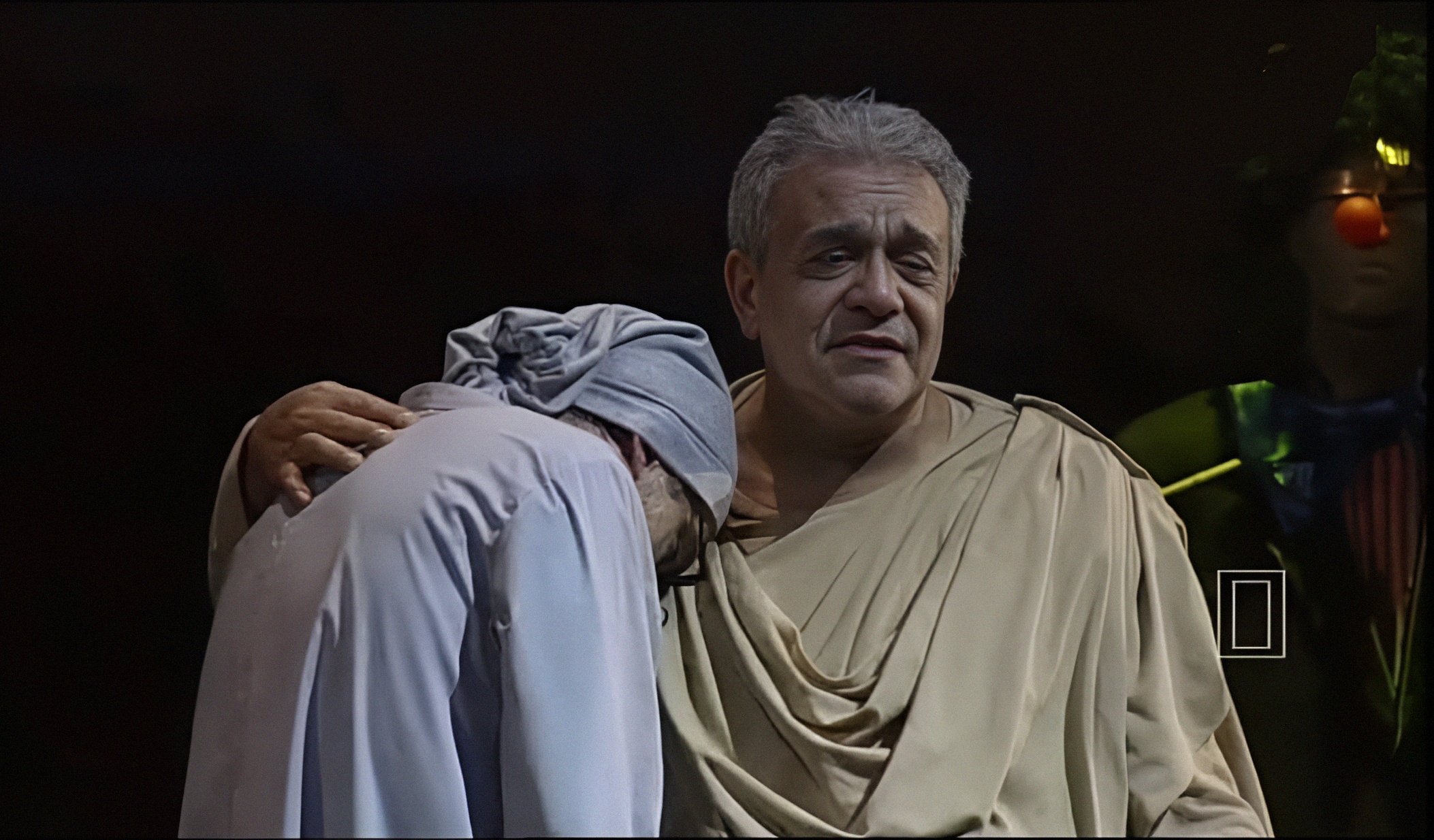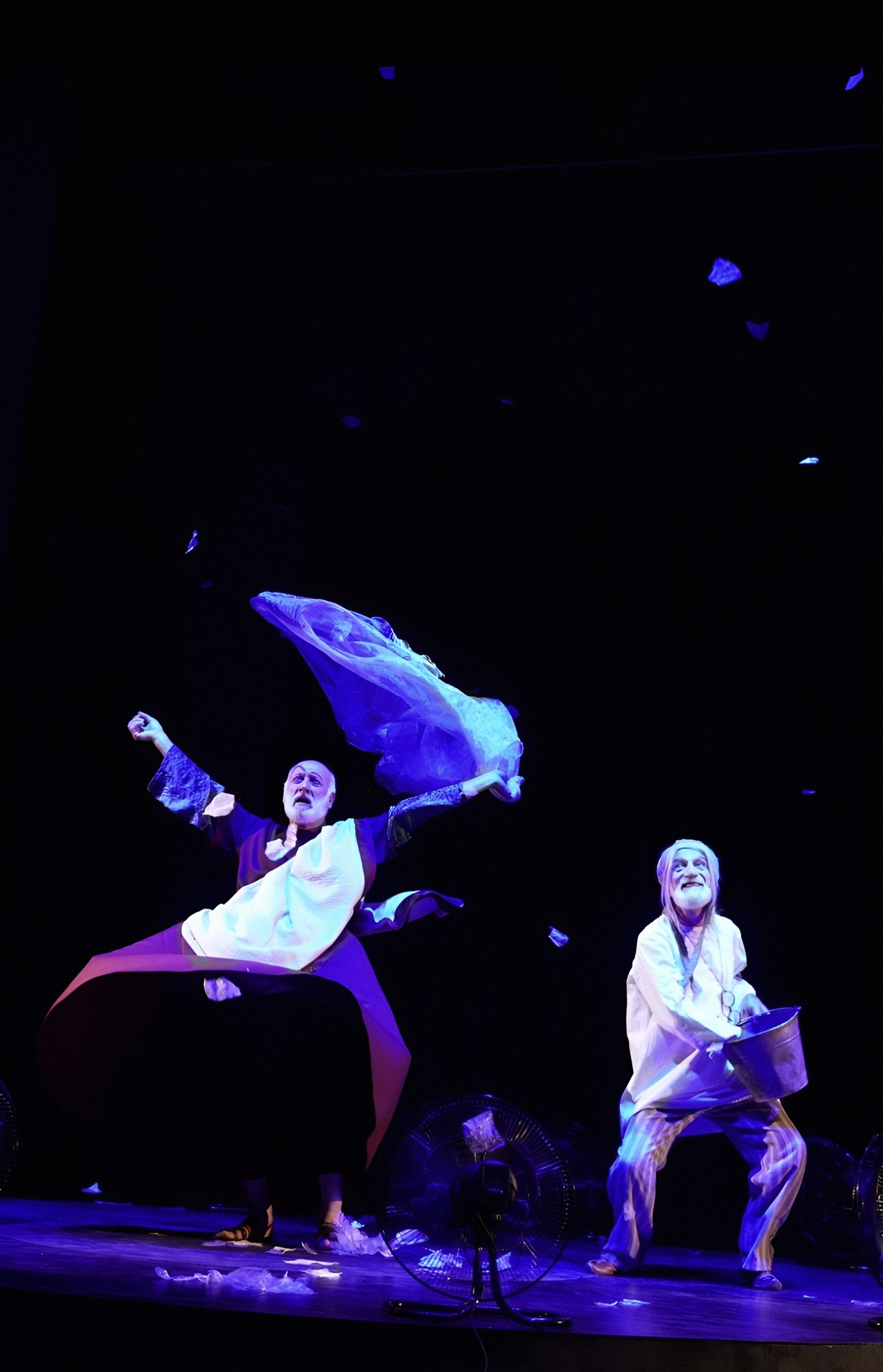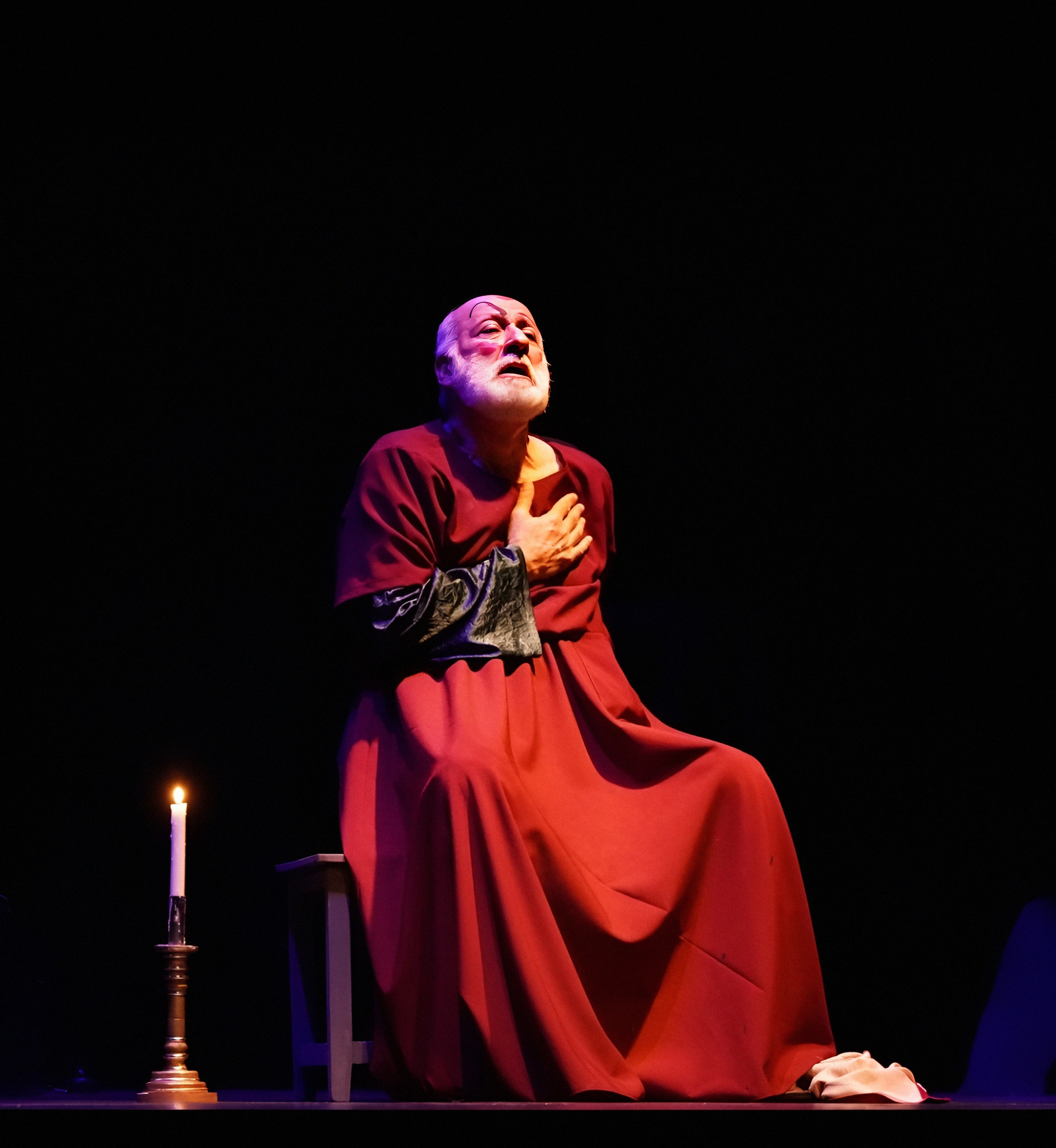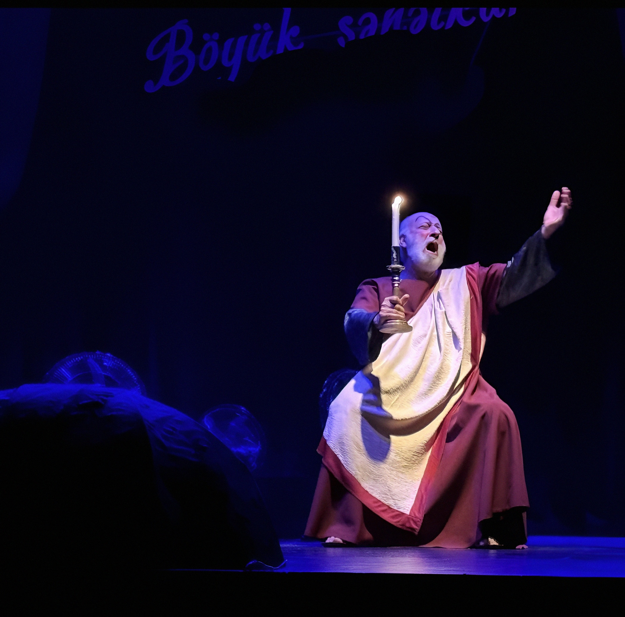 Светловидова играет Ханлар Гашымзаде. Его герой — не просто забытый актёр, забывающий текст. Это не артист, перебирающий золотую летопись ролей. В нём угадывается нерастраченный, недоверенный ему репертуар, и шекспировские монологи из его уст звучат как «Я Гамлета в безумии страстей, который год играю для себя»… Он произносит монологи из Пушкина, Грибоедова, вспоминает любовные драмы, и всё это звучит так, будто он репетирует не спектакль, а собственную смерть. Суфлёра играет Абульфат Салахов, и именно он становится точкой устойчивости: тот, кто помнит текст, удерживает ход времени, удерживает самого героя. Без суфлёра театр молчит, без него актёр — это просто старик в костюме.