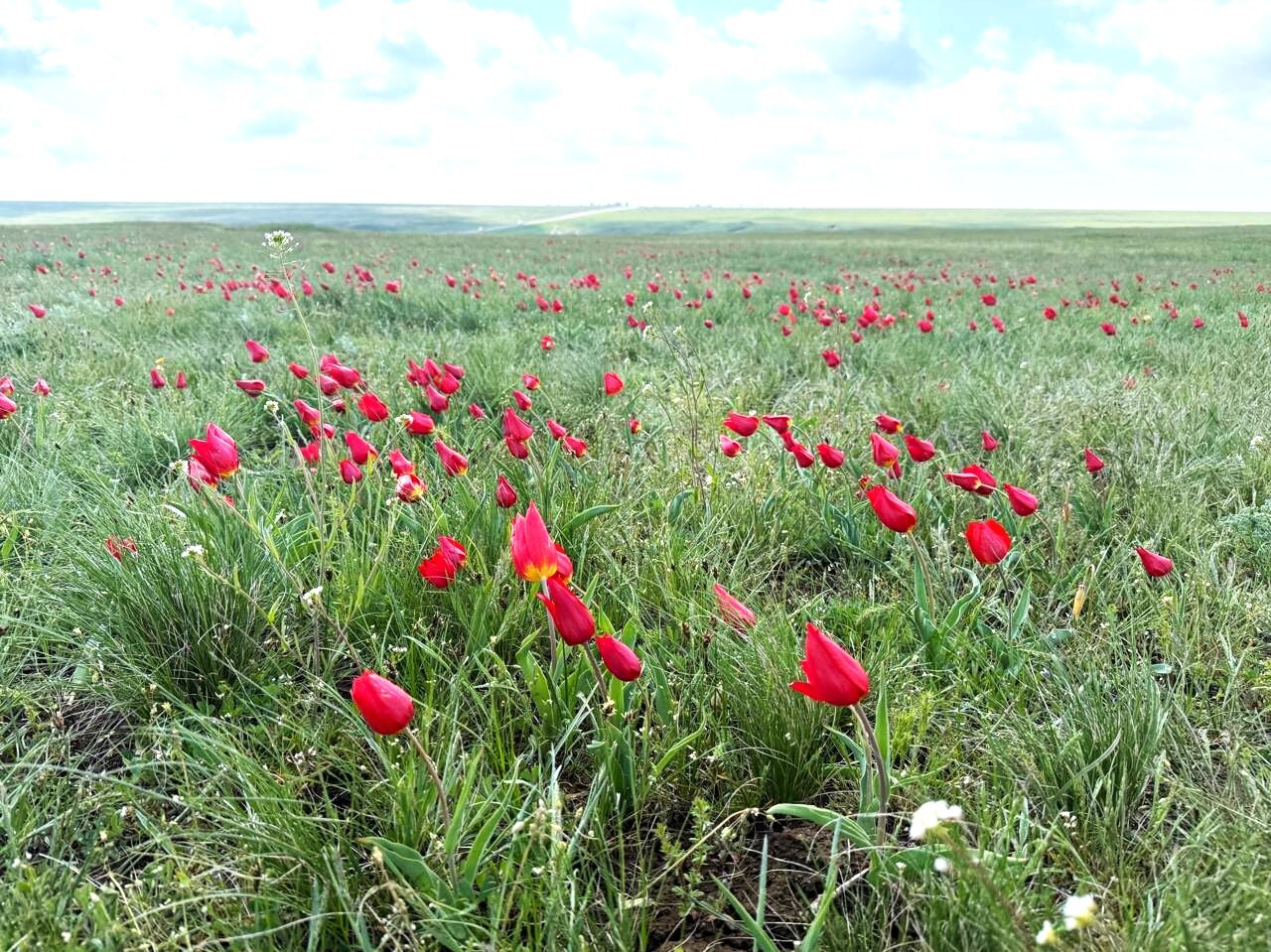 Угадать лучшее место сезона тюльпанов иногда бывает очень сложно. Локаций, где пробиваются к солнцу степные цветы невообразимо много, но где развернется главное цветение – тайна природы. В некотором смысле – это сюрприз: в одном месте степь может неожиданно вспыхнуть яркими красками, а в другом – остаться почти пустой. Почему? До конца неизвестно.
