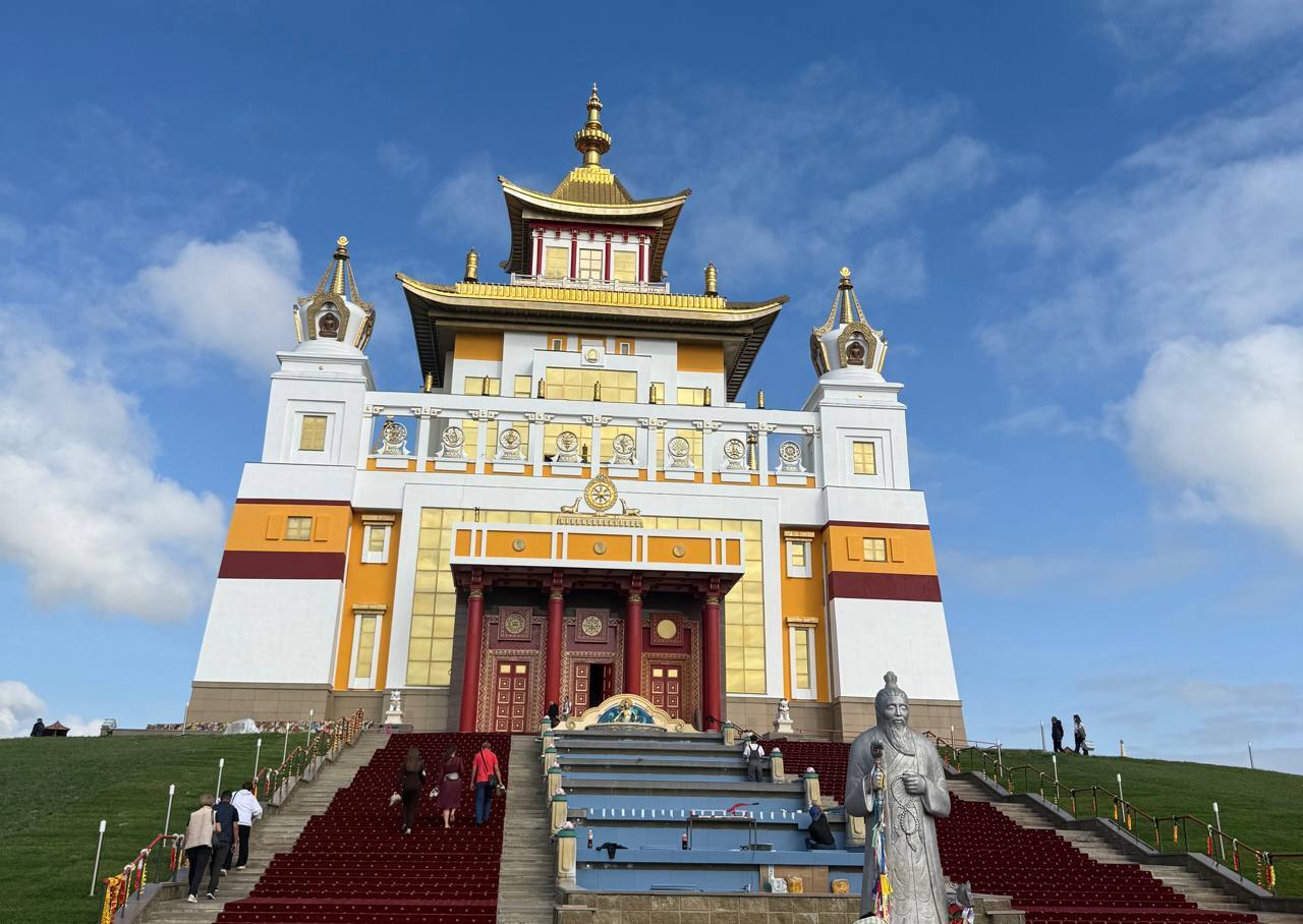 Обычно с этнопарка и начинается туристический маршрут, а после первых впечатлений гостям предлагают общение с Буддой – он, величественный, выстой 9 метров – одна из крупнейших скульптур – не может не поражать воображение. И сам Центральный хурул «Золотая обитель Будды Шакьямуни», где находится изваяние божества, – масштабное сооружение и вполне может потягаться с другими буддийским комплексами Европы. Статуя Будды в Элисте покрыта сусальным золотом.