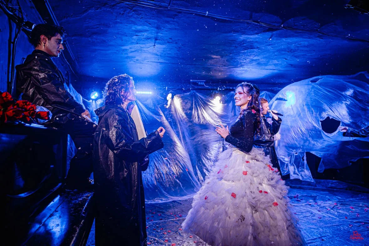 Спектакль «Бесприданница. Реально жестокий романс» в театре VS начинался не с вешалки: еще на улице зрители слышали звуки зажигательной «цыганочки». Перформанс, блистательно исполненный актером Саро Балаяном и актрисой Еленой Нескромной, сразу погружал в атмосферу пьесы и создавал предвкушение чего-то нового и необычного.