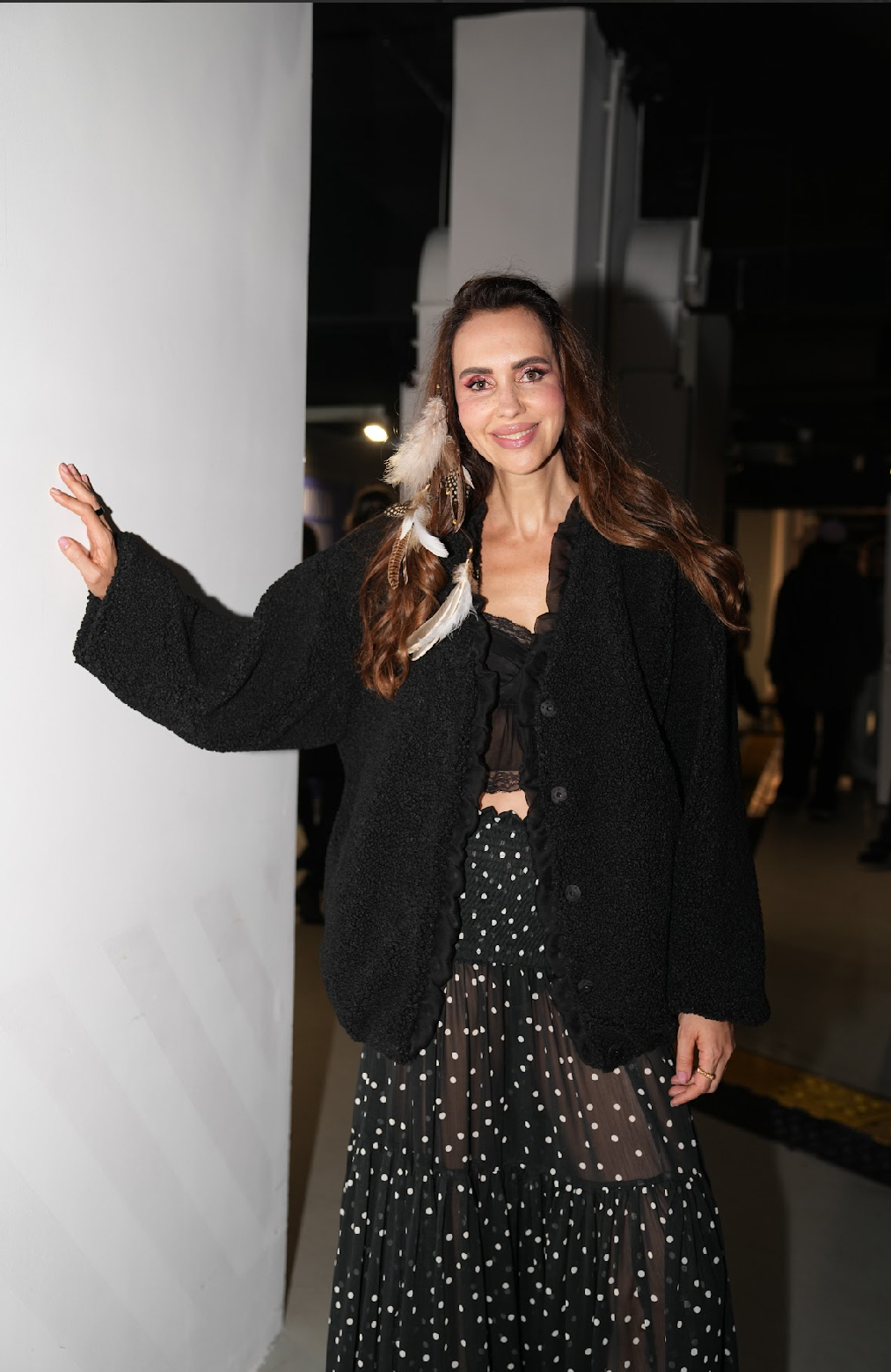 В коллекции читается уважение к традициям и приверженность идеям экологичности. Особенно мне запомнились модели из лакированной ткани, шелка и замши — изысканные и глубокие по настроению. На показе был представлен второй дроп капсульной коллекции, и публику буквально увлекла эта добрая, полная магии история. Творческий потенциал дизайнера Евгении Линович не вызывает сомнений — он по-настоящему впечатляет. В ожидании новых шедевров хочется продолжить сказочную линию: «Это присказка, не сказка — сказка будет впереди…»