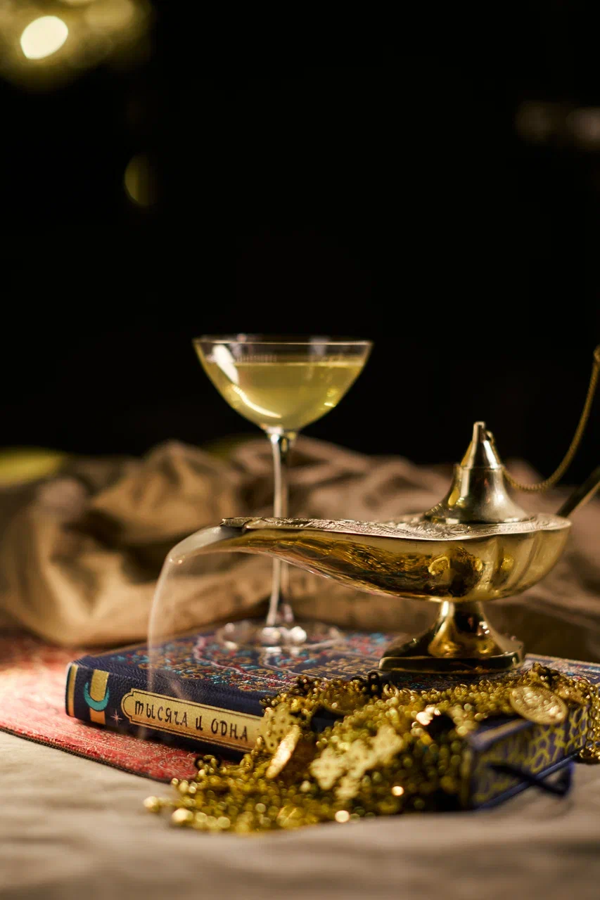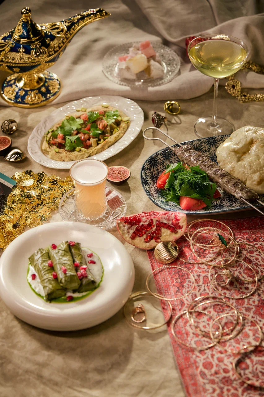 Меню погружает в атмосферу «Тысячи и одной ночи» при помощи изысканных ароматов и тонких вкусов восточной кухни. В него вошли следующие позиции: нежная долма в виноградных листьях с зёрнами граната и соусом мацони, сочный люля-кебаб с узбекскими томатами и свежей зеленью, а также авторский хумус с печёным баклажаном и фисташковой пастой. Особого внимания заслуживают авторские коктейли шеф-бармена сети ресторанов «Дымзавод» Антона Герасимова: «Лампа Аладдина» на джине с жасмином, виноградными нотами и креативной подачей в тематической посуде, а также яркий «Восточный» с ромом, апельсиновым ликером и тропическими акцентами маракуйи.