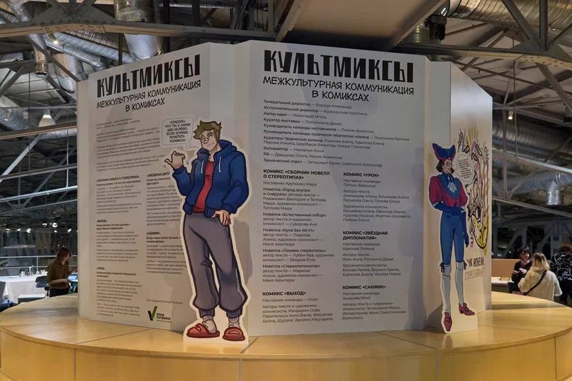 17 ноября в Еврейском музее и центре толерантности открылась выставка графических новелл «КультМиксы». Экспозицию создали междисциплинарные команды молодых людей 16–23 лет — художники, психологи, филологи и дизайнеры, работавшие над проектом весной и летом 2025 года.
