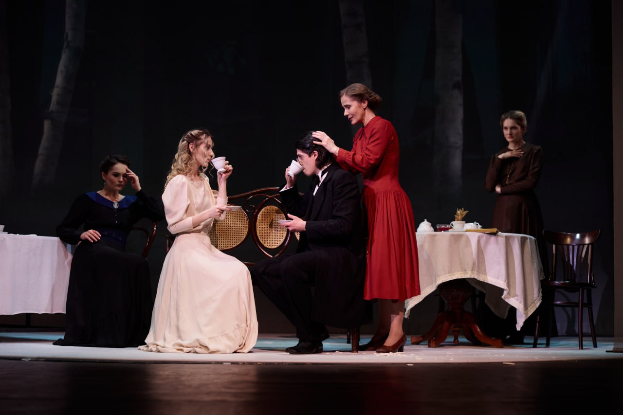 Театр на Малой Ордынке представил премьеру спектакля «Розовое платье» с полным аншлагом. Постановка Эдуарда Боякова по пьесе Наталии Мошиной — своеобразный сиквел знаменитой пьесы Чехова «Три сестры».