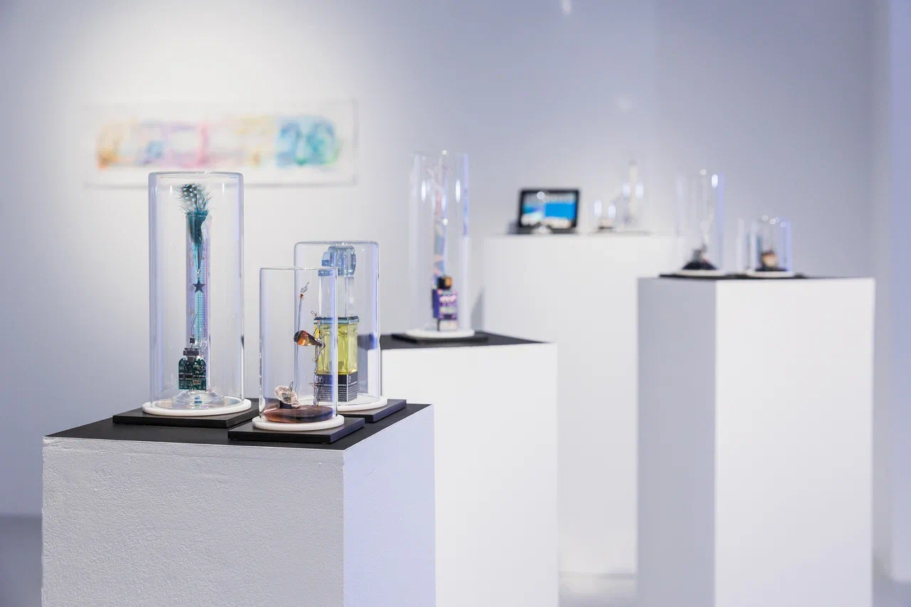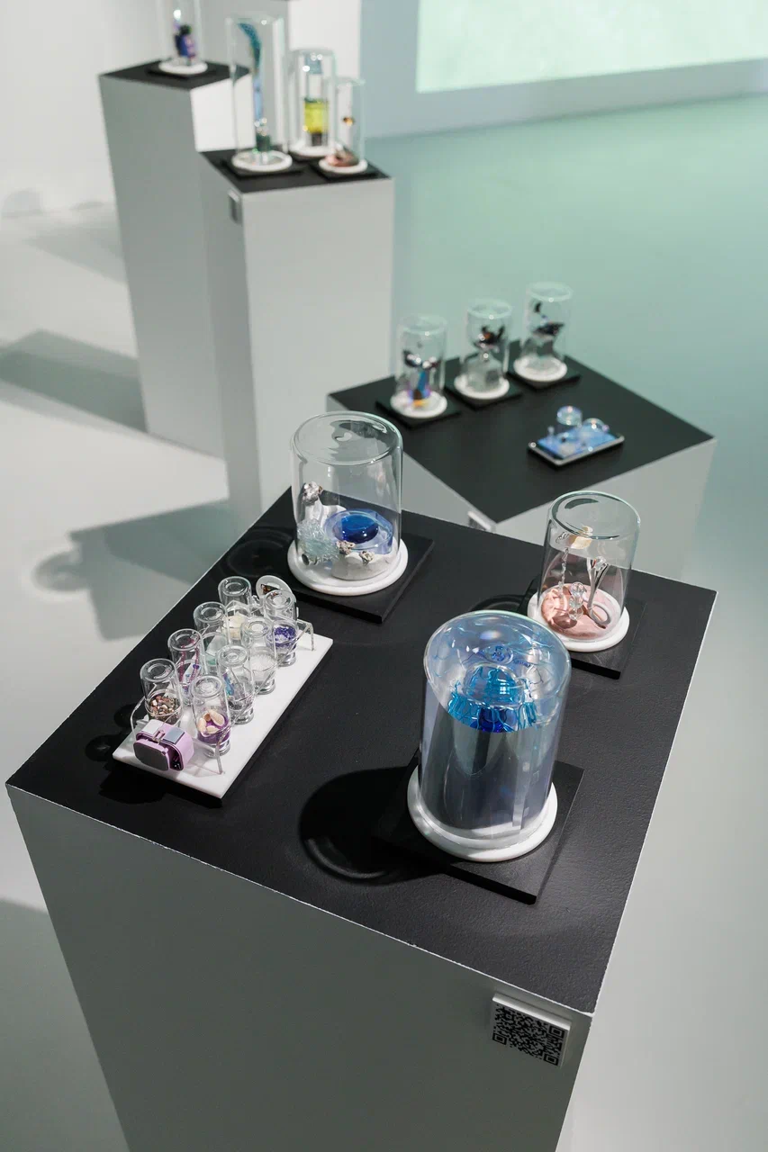 Из воображаемой экспедиции художница «привозит» артефакты: образцы инопланетной флоры, фрагменты биомов, модели устройств высокоразвитых цивилизаций. Скульптуры из стекла и найденных объектов напоминают музейные экспонаты или лабораторные образцы.