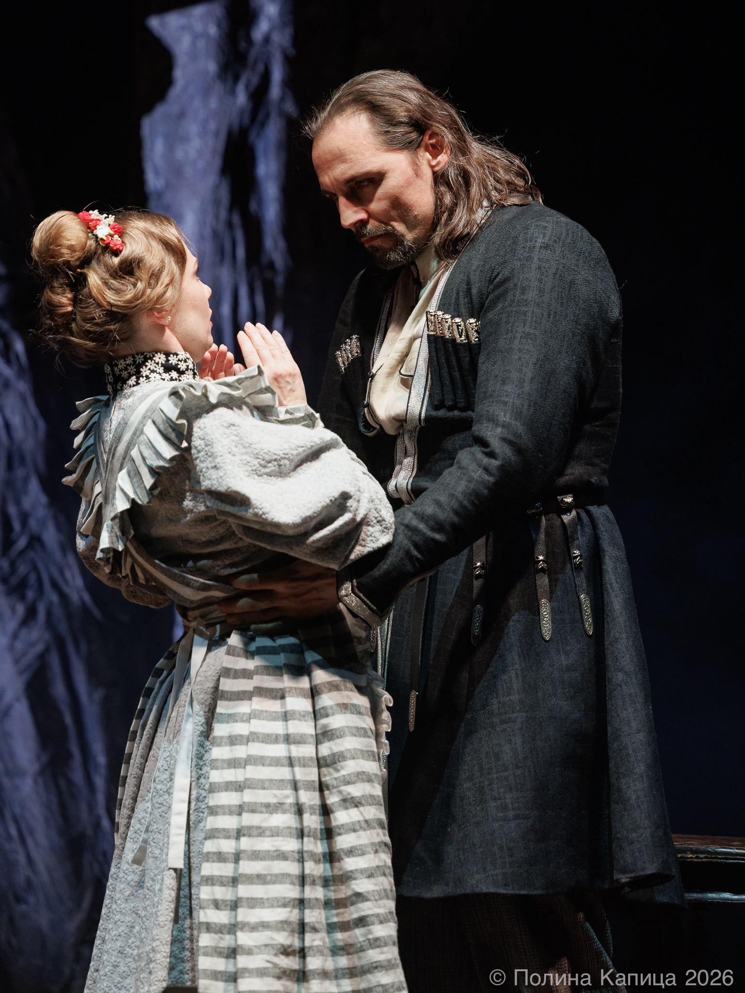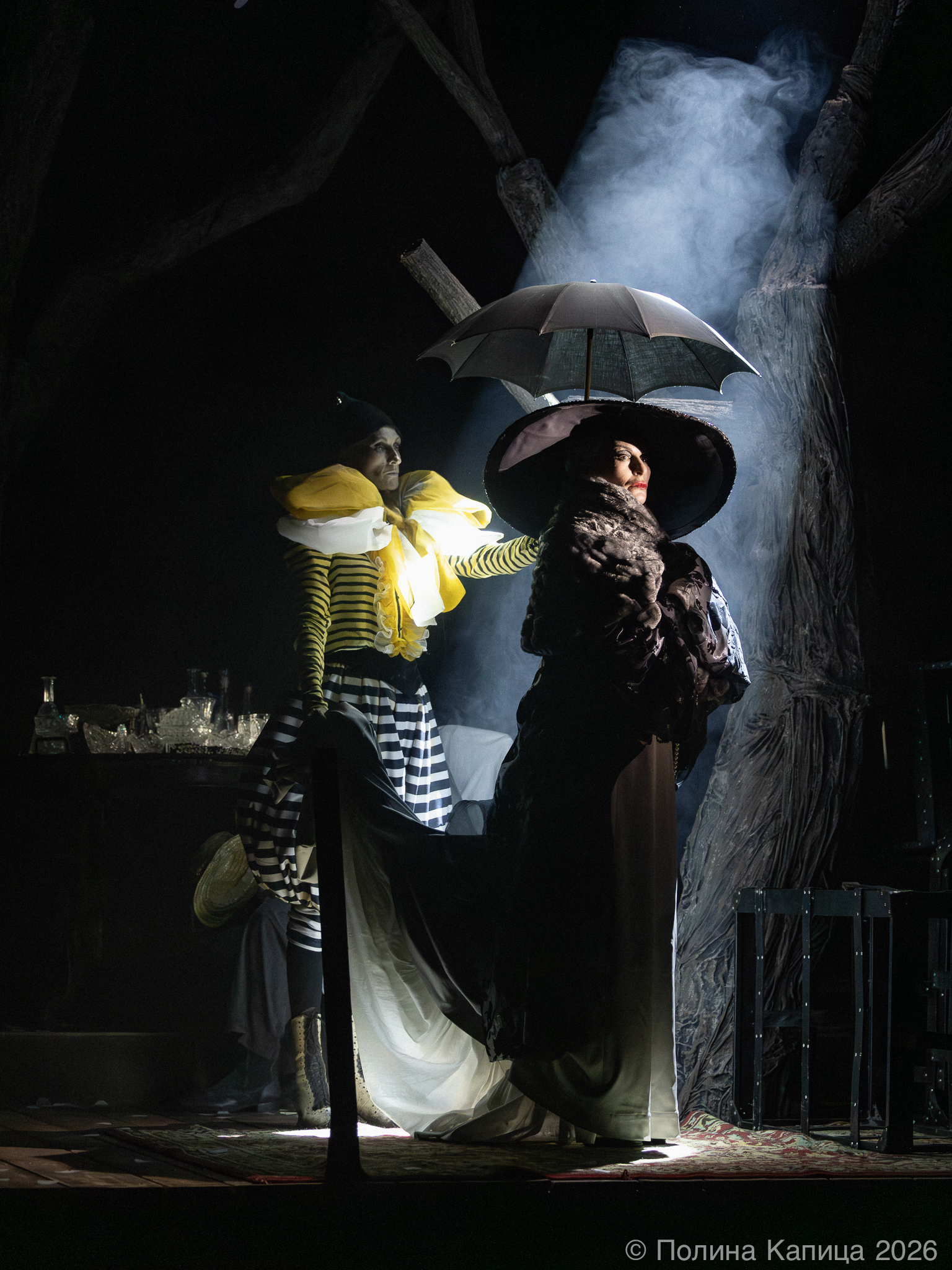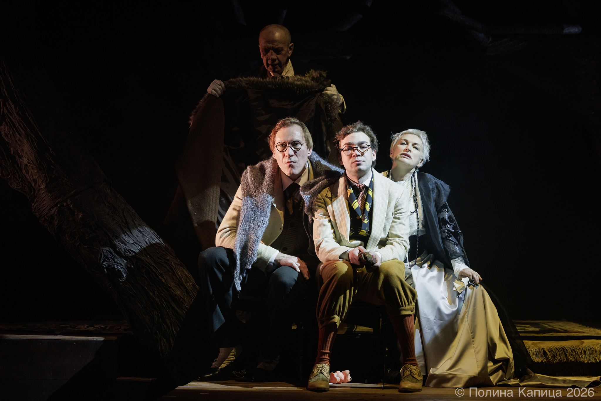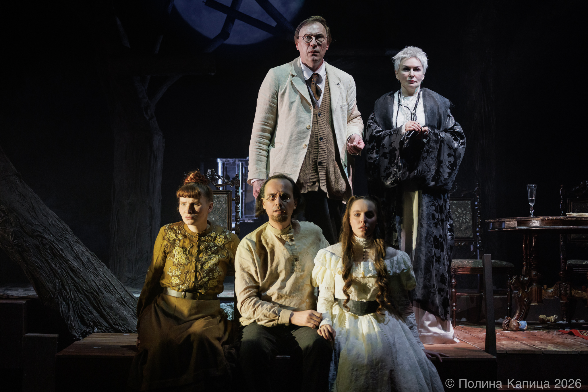 Живой оркестр удивительно точно передает атмосферу «кипящих» страстей, кровавая луна и голые деревья — очень эффектная и броская визуальная составляющая! Великолепный актерский состав мастерски поддерживает эмоциональное напряжение зала. В роли Раневской актриса Людмила Погорелова — изящная игра актрисы мгновенно очертила зрителю образ инфантильной и легкомысленной героини. Красавец Дмитрий Бозин в роли Епиходова то и дело срывал бурные аплодисменты! Филигранно, с эстетичными мизансценами, понятной и уместной логикой персонажа.