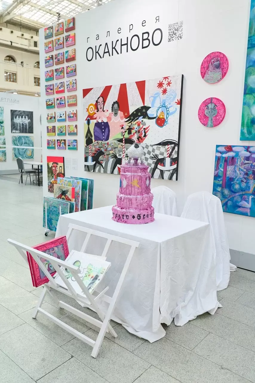 Отмечу интересный факт, современное искусство показали на юбилейной выставке галеристы, которые были ее участниками и 30 лет назад. Например, Владимир Овчаренко и его галерея Ovcharenko представляет произведения Леонида Цхэ, Павла Пепперштейна, Валерия Кошлякова, Егора Кошелева, Влада Кулькова, Алексея Каллимы и Владимира Логутова.