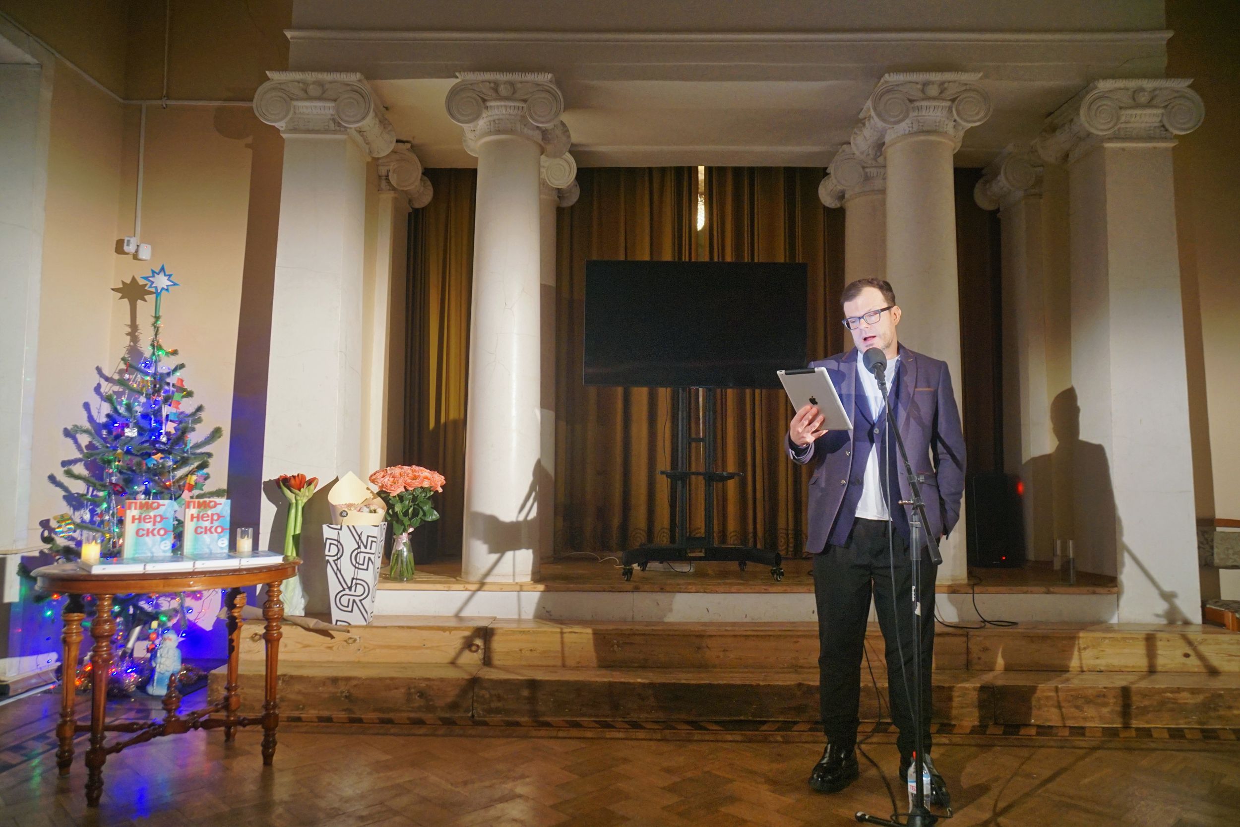 В доме на Леонтьевском — том самом, где стены помнят шёпот Станиславского и запах театрального грима — пахло приятным ожиданием и радостью встречи друзей и коллег. В канун Сочельника, когда тишина становится особенно звучной, книге дали голос. Точнее — голоса. Их было много, как отражений в новогоднем шаре. Они сплелись в аудио-книгу «Пионерское время» — посмертный, но оттого не менее живой, диалог с Екатериной Истоминой. Мне тоже выпала честь прочитать одну из глав, где Катя отправляется в «Космос» к Пьеру Кардену.