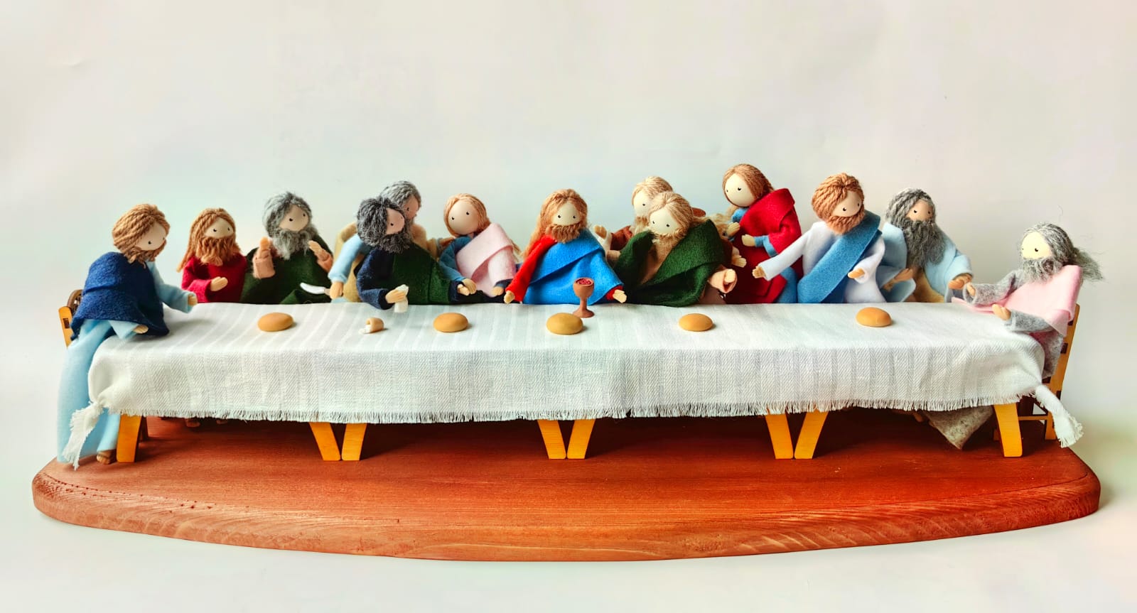 У меня уже есть несколько полноценных коллекций. Одной из моих самых больших и кропотливых работ из коллекции «Религия» стала «Тайная вечеря», которую я создавала по мотивам знаменитой фрески Леонардо да Винчи. Это сложная композиция, где мне хотелось передать характер и эмоции каждого апостола, поэтому я прорабатывала каждого с особым вниманием.