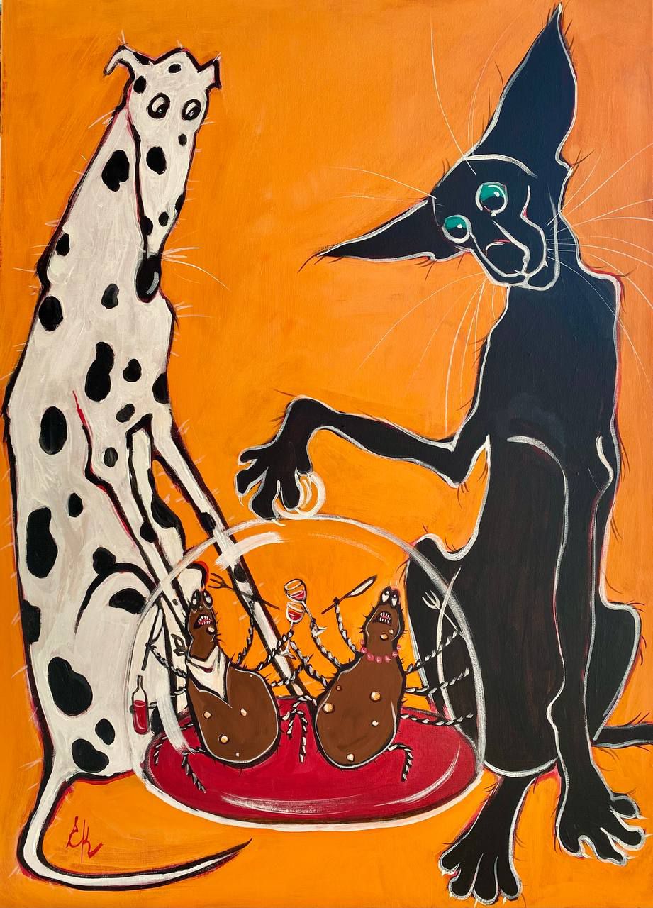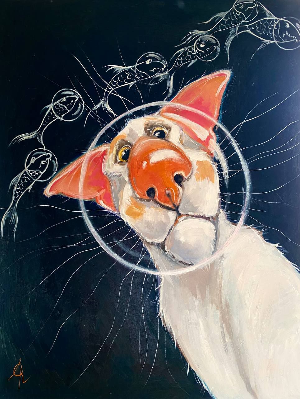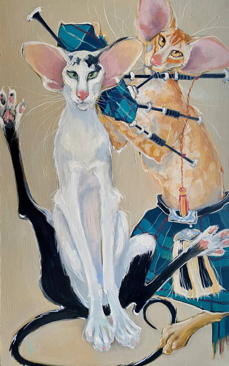 «Коты — это моя большая любовь с детства. Часами могла наблюдать за их пластикой, игривостью, тем как солнце подсвечивает шерсть. В доме всегда были кошки. Материала для наблюдений было предостаточно. Конечно, как любой художник, я пишу и пейзажи, и натюрморты, но кошки — это основная тема, что бы я ни делала: живопись, роспись стен, графика, дизайн. Сейчас я занимаюсь разработкой этикеток на товары для животных, и на них конечно же котики, а к 8 марта принимала участие в создании принтов на лимитированную серию бандан "Для котофеев"», — делится с нами художник.