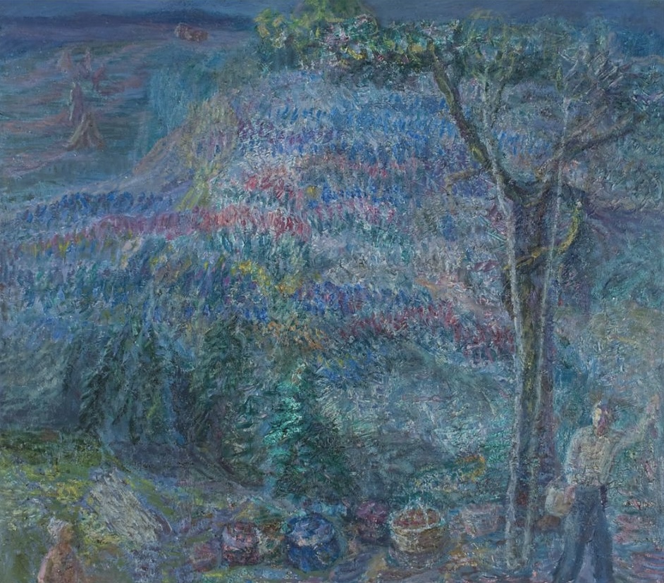 Геденидзе их наслаивает: пастозно, мастихином, крупной кистью. И от этого простой сюжет похода по грибы приобретает глубину такой силы, что ни словами, ни через фото не передать и десятой её доли. Нужно видеть лично.