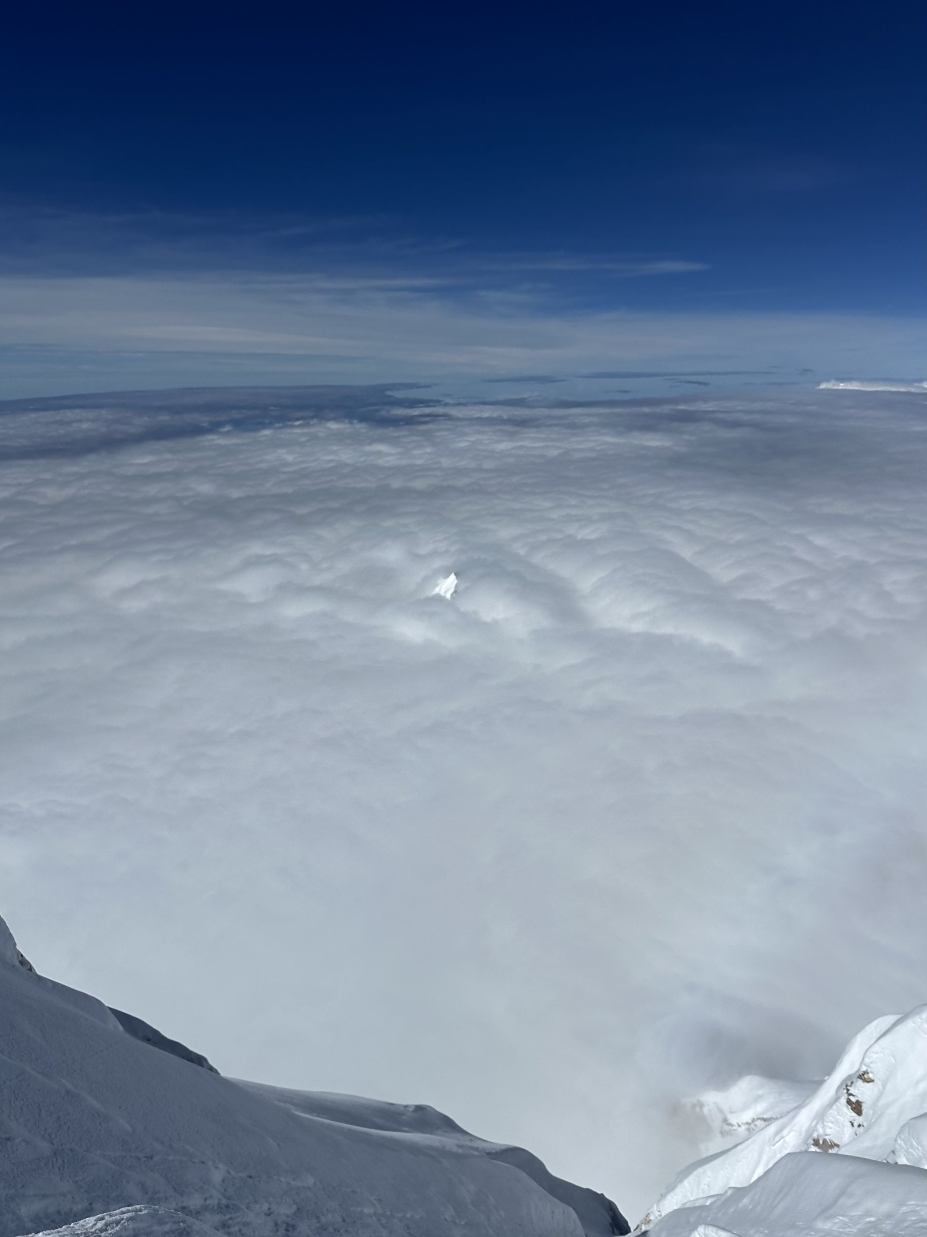 Подходит ночь. Утром, с рассветом, — вниз. Среди ночи Вася спрашивает, могу ли я без того, чтоб ноги в куртку засовывать. Первый подмерзает — сдул пуховый коврик, в него же и закутался. Конечно, могу. У меня чуни пуховые. Надеваю на них мыльницы — и засыпаю. Просыпаюсь от того, что соседи на гору выходят. И от того, что ноги замерзли. Колочусь до утра, жду, когда выйдем. Благо, вещей немного — собрались быстро. Впереди — три лагеря вниз. Работаем.