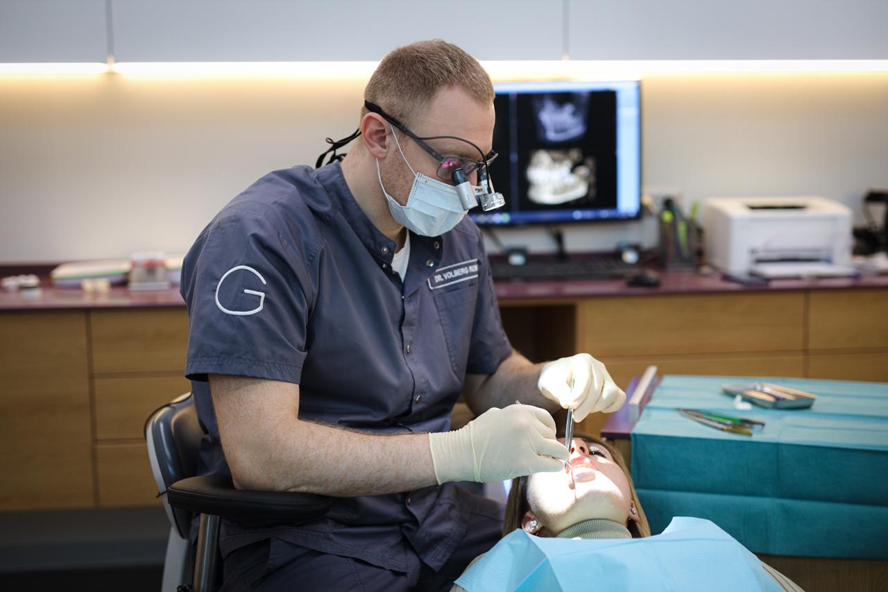 - Гормональная перестройка. У женщин в период постменопаузы на фоне изменения гормонального обмена возрастает риск развития остеопороза. Меняется структура костной ткани, что связано с рядом ограничений на некоторые стоматологические манипуляции. Однако если пациентка здорова по основным показателям и не принимает препараты, тормозящие метаболизм костной ткани, любое хирургическое лечение проводят в «штатном режиме». Если же пациент получает некоторое медикаментозное сопровождение, то мы связываемся с её основным лечащим врачом и выбираем наиболее оптимальную тактику и стратегию её реабилитации.