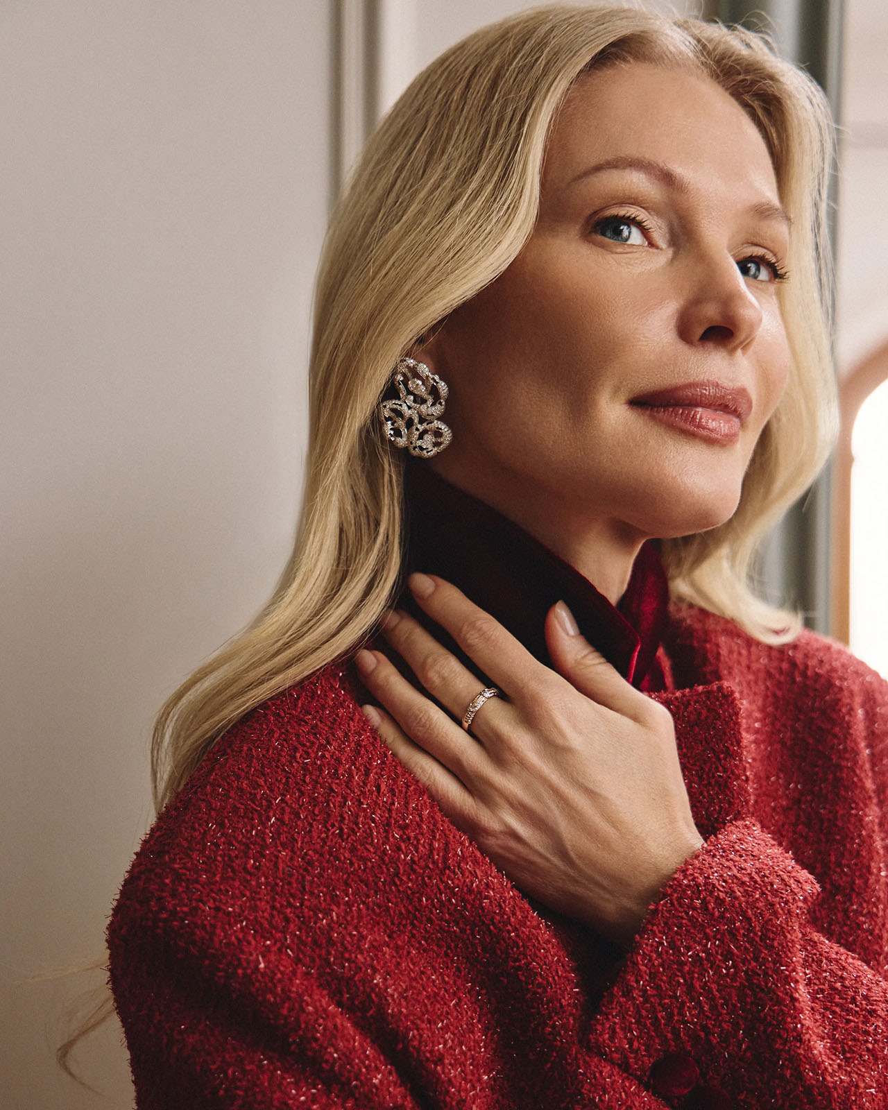 Бренд «Хохлома» переосмысляет эстетику народных промыслов в драгоценных металлах. Вместо привычных узоров на дереве здесь — золото и бриллианты. В коллекциях используются традиционные природные мотивы: например, кольцо из красного золота с родиевым покрытием украшено рельефным орнаментом «Кудрина». Его узнаваемые завитки обвивают палец, а дополняют композицию три дорожки из 78 бриллиантов. Национальный культурный код деликатно сочетается с ювелирной классикой и в других изделиях бренда — взять, например, серьги. В этой модели традиционный растительный орнамент переосмыслен в белом золоте. Витиеватый узор инкрустирован лабораторными бриллиантами огранки «маркиз» — их вытянутая форма повторяет линии хохломской росписи. Благодаря родированию серьги сохраняют яркий серебристый блеск и выглядят современно. Хохломская роспись — визитная карточка «Хохломы» (и было бы странно, если бы это было не так). В коллекции бренда «Утренняя кудрина» представлен белоснежный фарфор с золотыми расписными завитками — от чайных пар и разных тарелок до салатников. Эти изделия выполнены современными мастерами вручную.