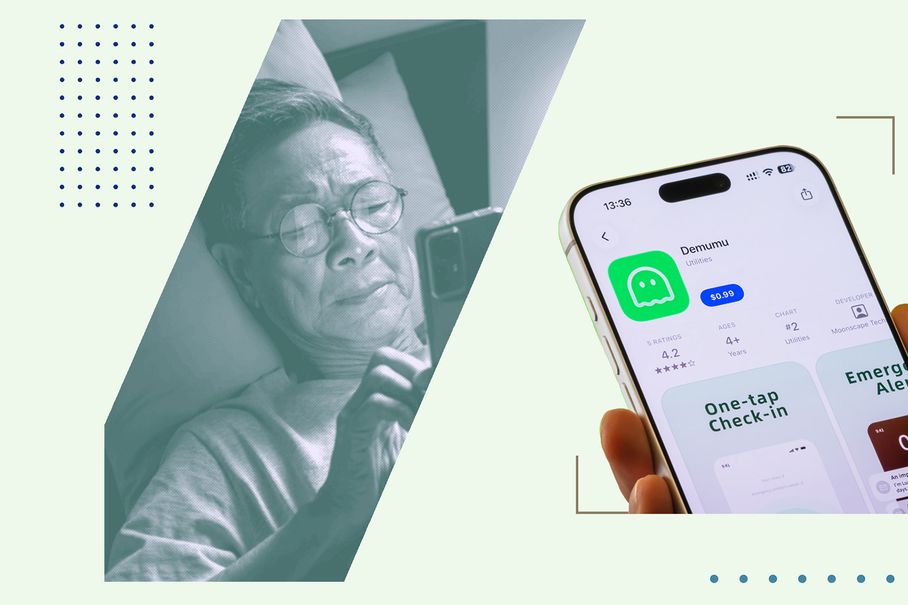 После установки приложения пользователь указывает номер доверенного лица — родственника, соседа по даче, коллеги, с которым вы здороваетесь у кулера, и так далее, в зависимости от того, насколько вы одиноки. Раз в день нужно заходить в приложение и нажимать на большую зелёную кнопку. Если вы не делаете этого двое суток, то указанный контакт получает тревожное уведомление с просьбой проверить ваше физическое состояние.