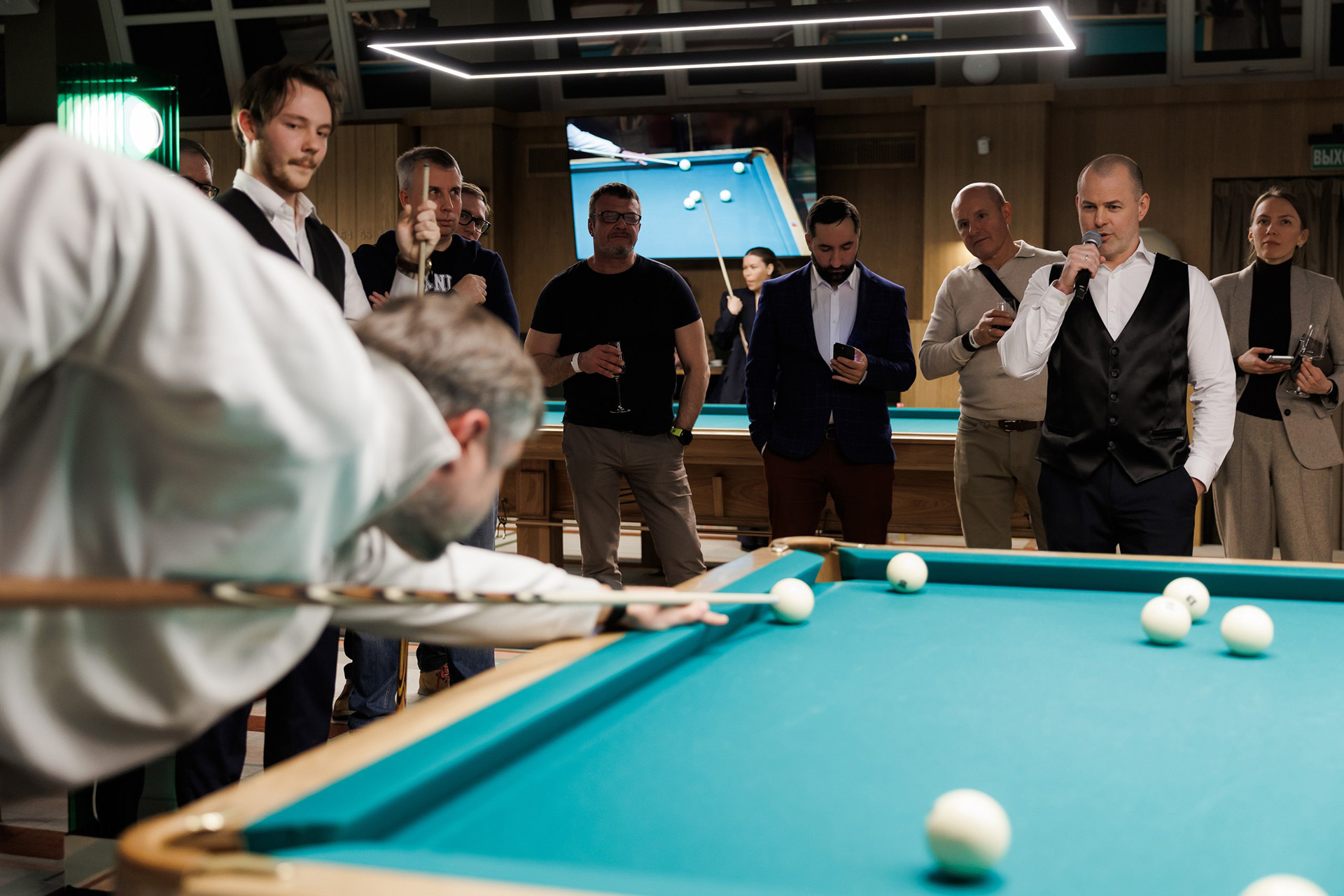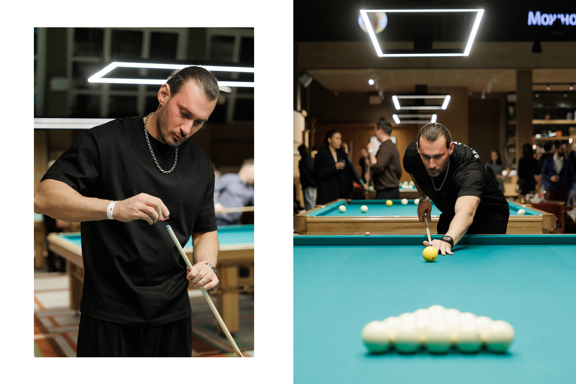 Закрытый турнир проходил в дисциплине «свободная пирамида» — одной из самых динамичных разновидностей русского бильярда, где игроки не привязаны к конкретному шару и могут продолжать серию после удачных ударов партнёра. Формат предполагал игру в парах: профессионал и любитель из числа клиентов Т-Банка оказывались по одну сторону стола, и результат зависел в том числе от того, насколько точно удаётся выстроить взаимодействие.