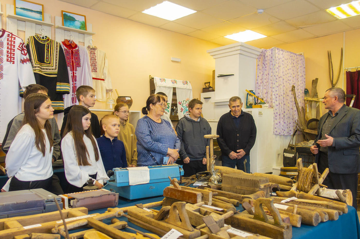 «У каждого села, у каждой деревни есть свое лицо. Кто были первые поселенцы, как одевались, чем занимались, как колхоз создавался — все это заинтересовало нас, и мы начали искать информацию о своих героях труда и войны, спортсменах. В 2017 году начали по деревне ходить, собирать вещи, экспонаты. Там не только я — помогали Юрий Герасимов, инструктор по спорту, моя жена, Татьяна Романовна, многие. И люди охотно старые вещи сдавали в музей. Мы с супругой подготовили где-то две тысячи с лишним фотографий, ездили печатать, потом до двенадцати вечера вырезали из журналов, газет, готовили для стенда, чтобы показать: жизнь в селе кипит, люди работали и праздновали».