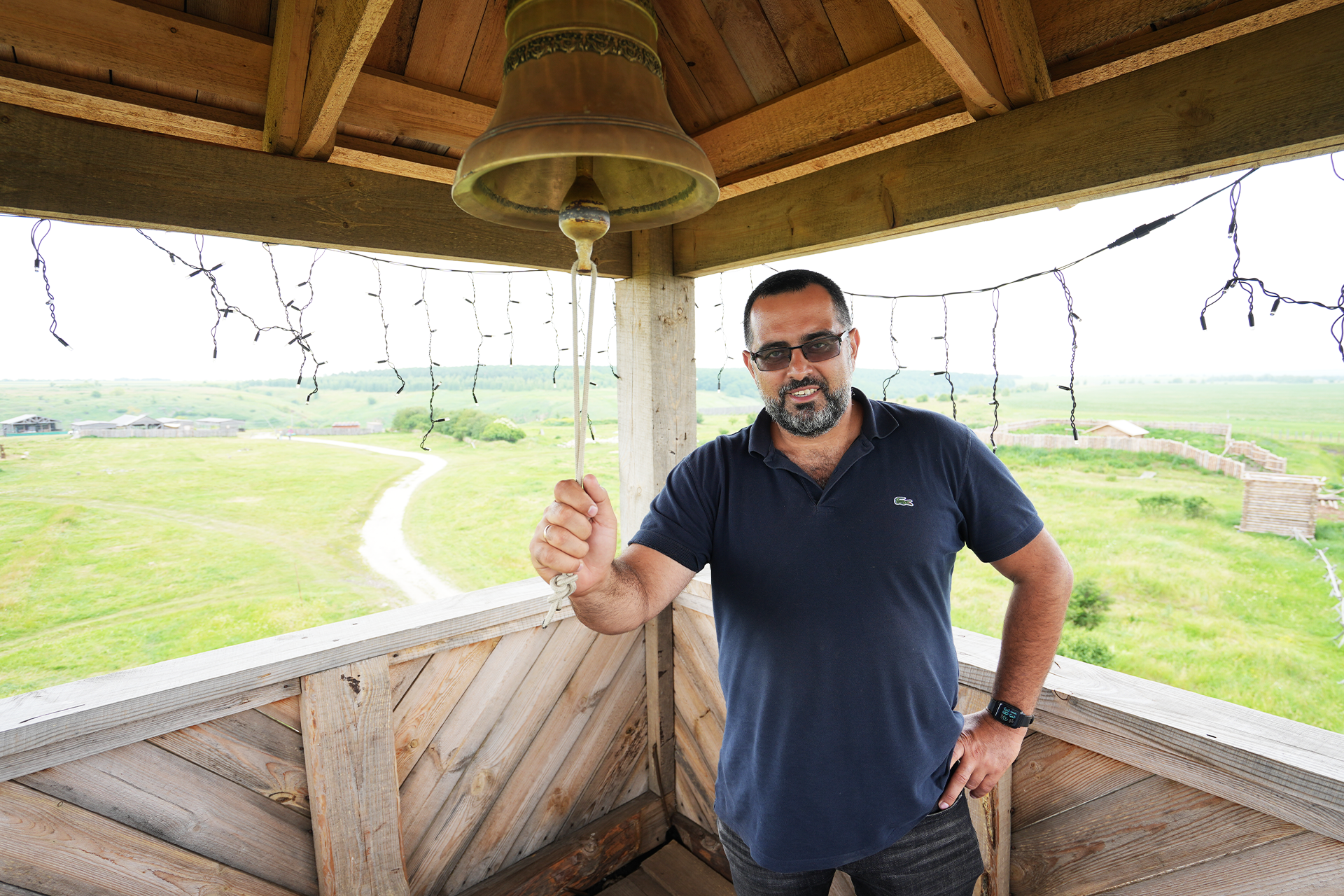 Сторожевую башню времени позднего Средневековья рубили и строили вручную. В башне находится музей. Там можно позвонить в колокол и примерить одежду стрельца. Построен парк в основном на деньги, заработанные фирмой Голотвина на археологии, и за семь лет работы проект не окупился. Александр предполагает, что на возврат инвестиций может потребоваться 20–25 лет. В пандемию парк приносил существенные убытки. «Но как я это все брошу? — говорит археолог. — Если его законсервировать, как раскоп, то начать заново будет очень трудно».