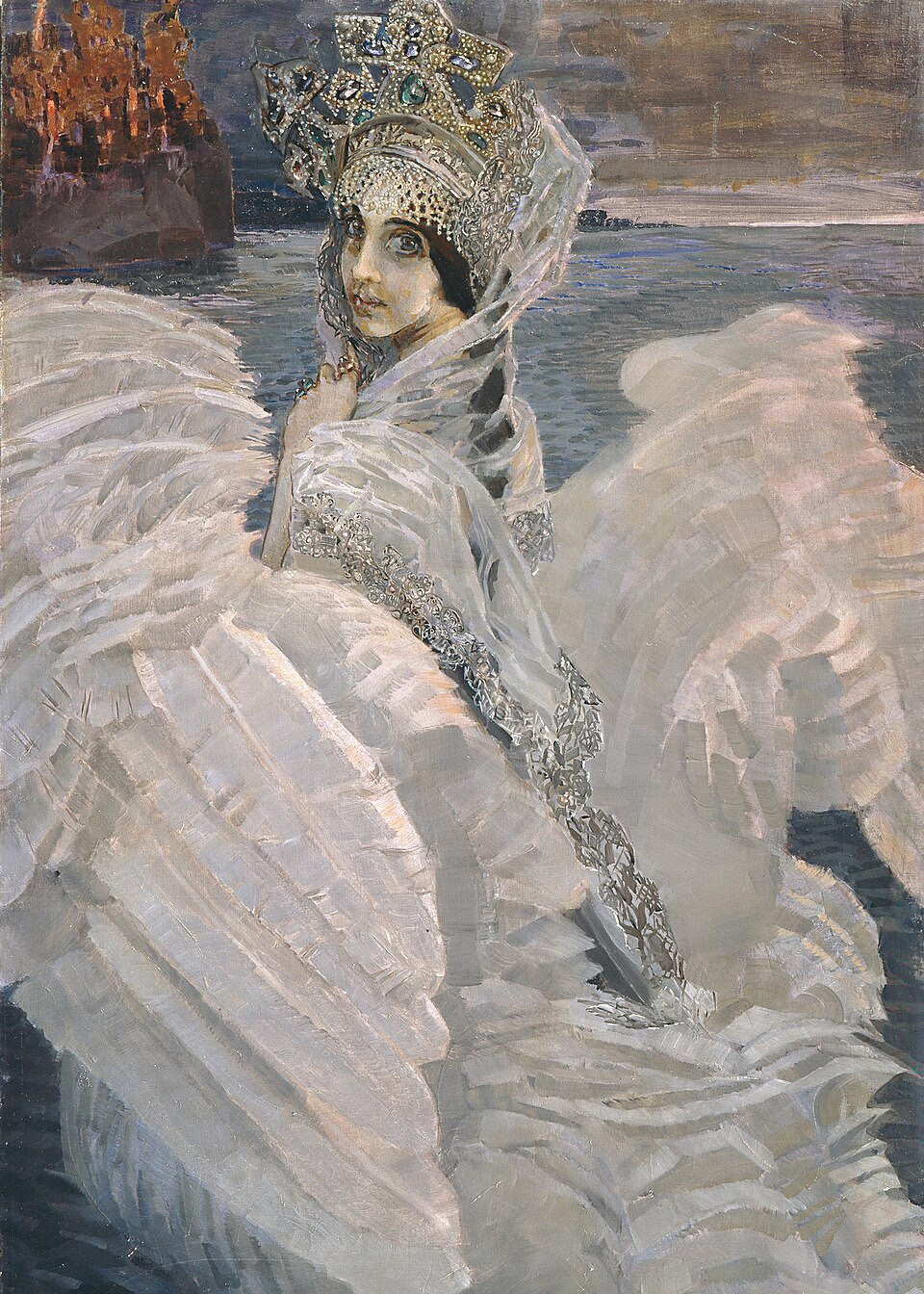 Врубель писал жену постоянно. «Царевна-Лебедь», «Морская царевна», портретные этюды и наброски — всё это Забела. Художник надевал на неё сказочные наряды, подбирал цвета под её голос, словно стремясь уловить в красках ту же магию, что звучала в её пении. На портретах она то мечтательна, то надменна, то растеряна. Когда Врубель начал сходить с ума (прогрессирующий сифилис и психическое расстройство сделали своё дело), Забела оставалась с ним. Она приезжала в клиники и пела для мужа, и так, день за днём, она возвращала его из бездны. «Все певицы поют как птицы, а Надя поёт как человек», — говорил Врубель. Он умер в 1910 году, Забела пережила его на три года. А её портреты — главный материальный след этой любви — до сих пор можно увидеть в стенах Русского музея.
