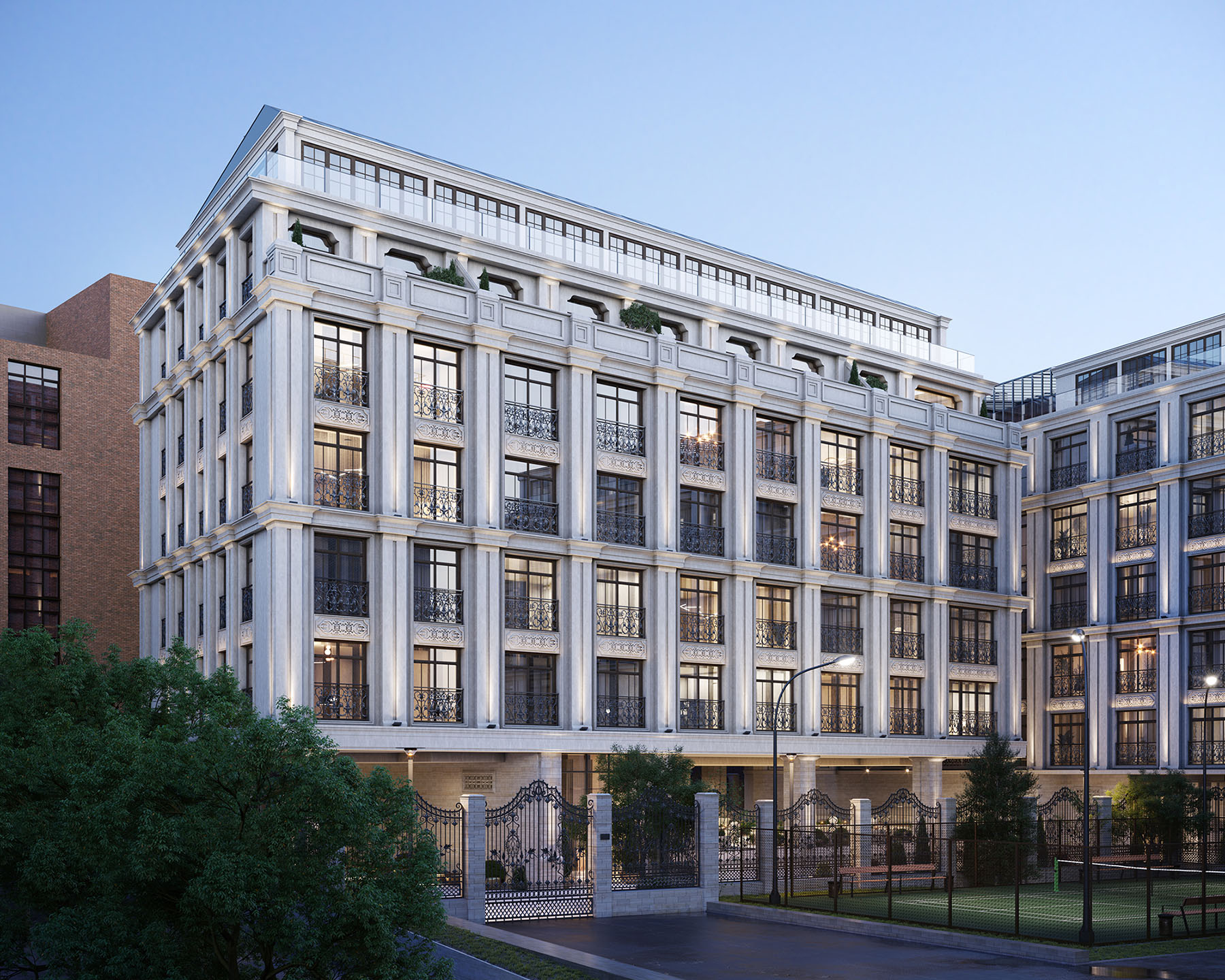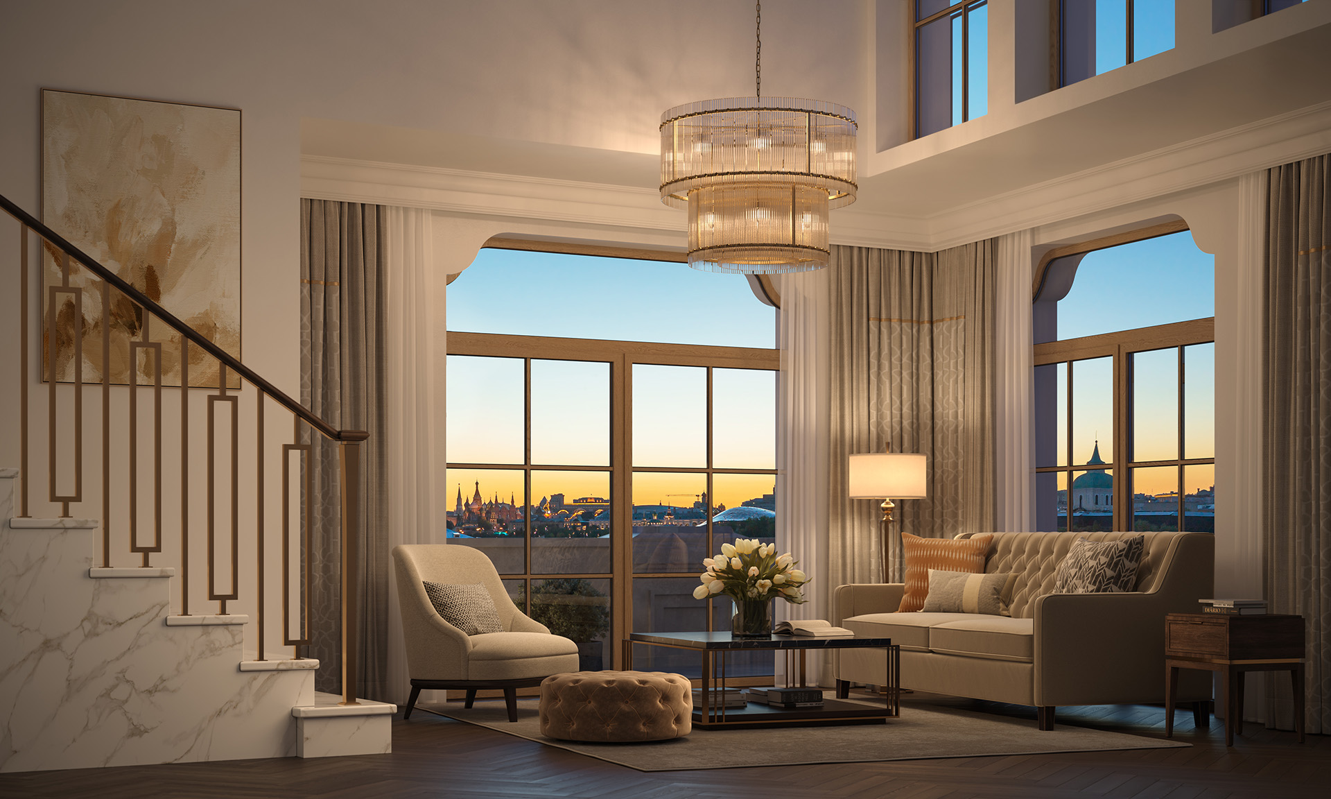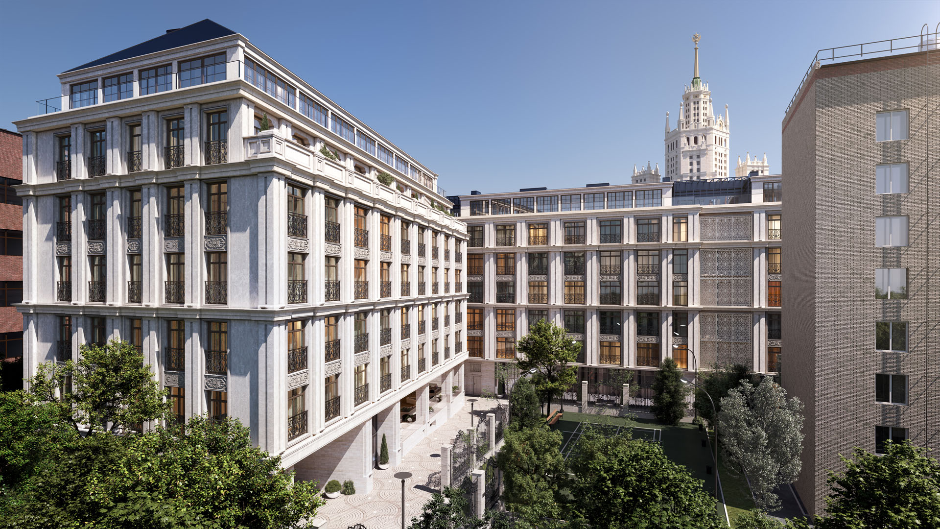 В клубном доме 73 квартиры (47–175 кв. м), больше половины — видовые. На последнем этаже — десять пентхаусов с восьмиметровыми потолками и террасами с панорамами на Кремль, Зарядье, высотку на Котельнической — здесь эти виды становятся частью повседневности.