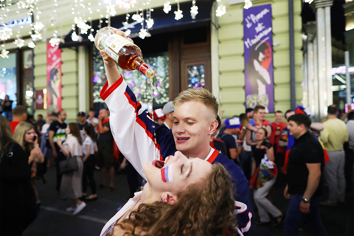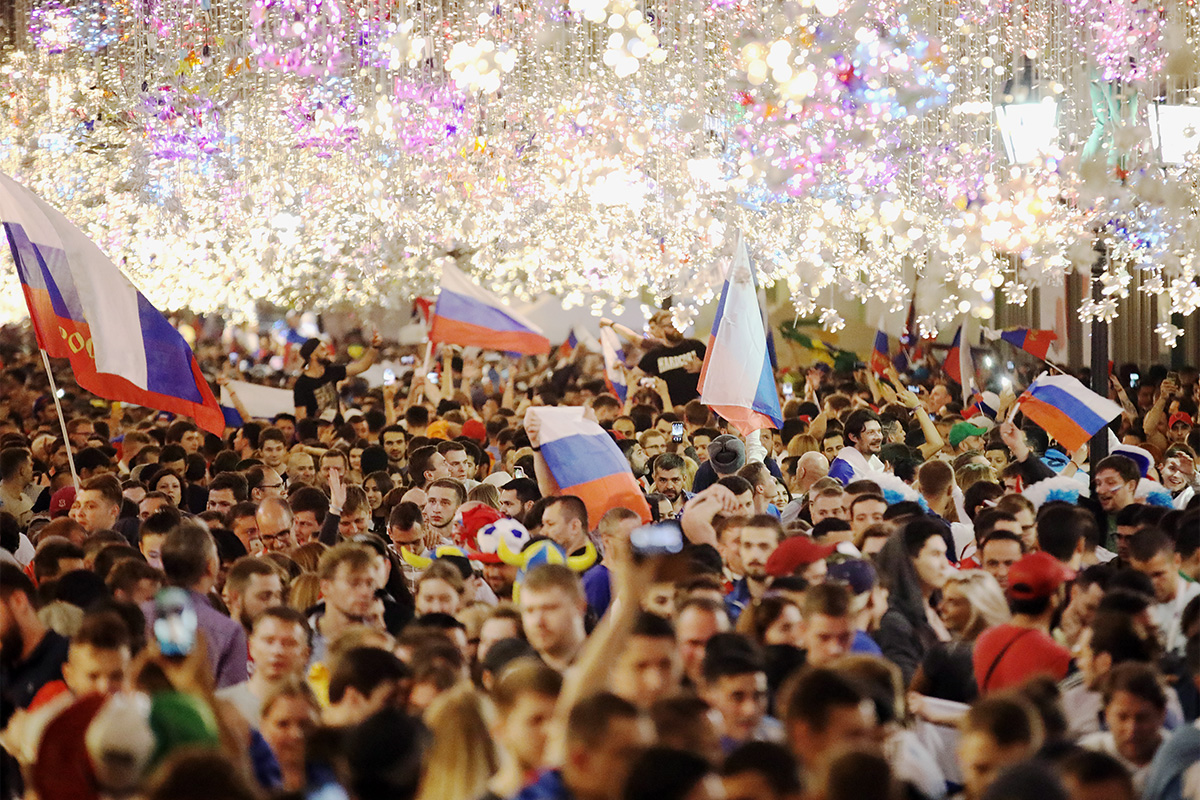 В последний раз из группы на Чемпионате мира сборная России выходила в 1988 году. Но тогда это была еще сборная СССР. Фото: Никольская улица в Москве, ставшая центром мира для иностранных фанатов, оккупирована российскими болельщиками Фото: Михаил Почуев/ТАСС