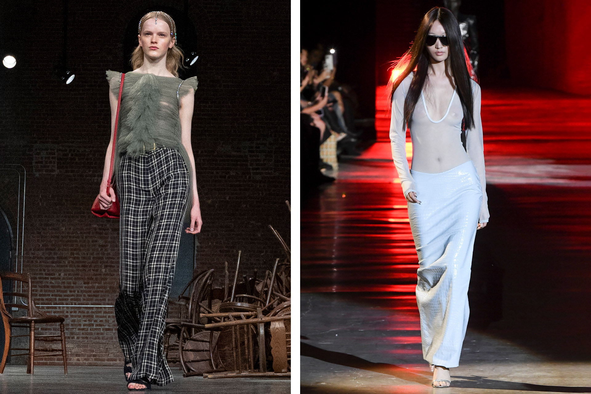 Тренд на прозрачность уже несколько сезонов не сходит с подиумов. Его можно воспринимать как антагонизм с оверсайзом: долгое время дизайнеры старательно пытались скрыть любые намеки на изгибы тела и особенности фигуры. Теперь же они призывают одеваться в невесомые ткани, демонстрируя все грани женственности. «Голые» платья любят многие звезды, например Хейли Бибер, Ким Кардашьян и Кендалл Дженнер. Правда, выбирают их скорее для мероприятий, чем для обычной жизни.