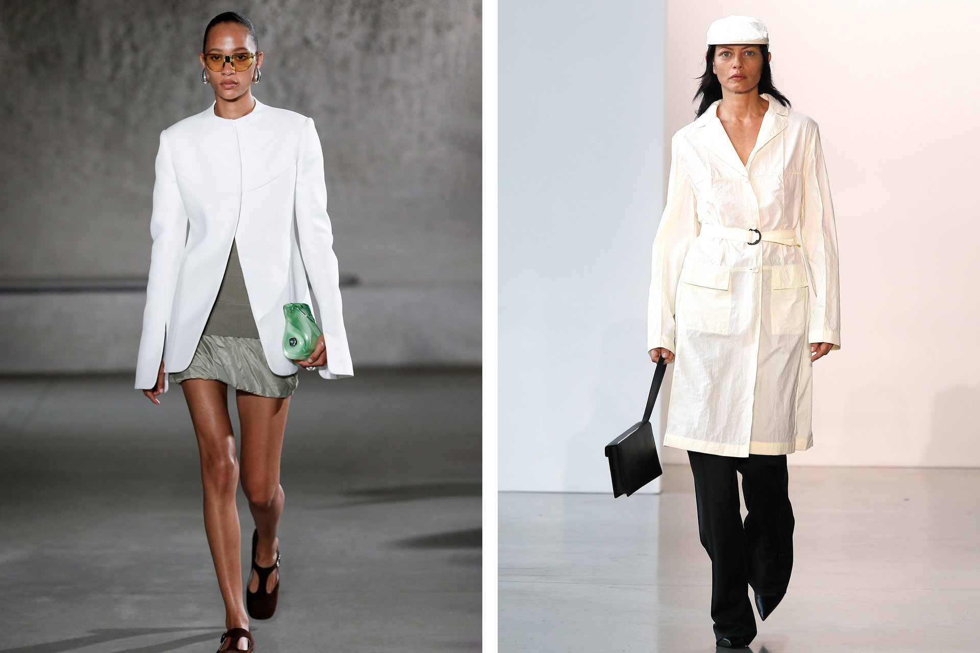Весной и летом хочется свежих цветов. Модельеры предлагают обратить внимание на белый, как будто после зимы люди не устанут от цвета снега. Это может быть монохромный образ, с ног до головы собранный в одном цвете, или отдельные элементы. Самой популярной вещью на подиумах стало белое пальто.