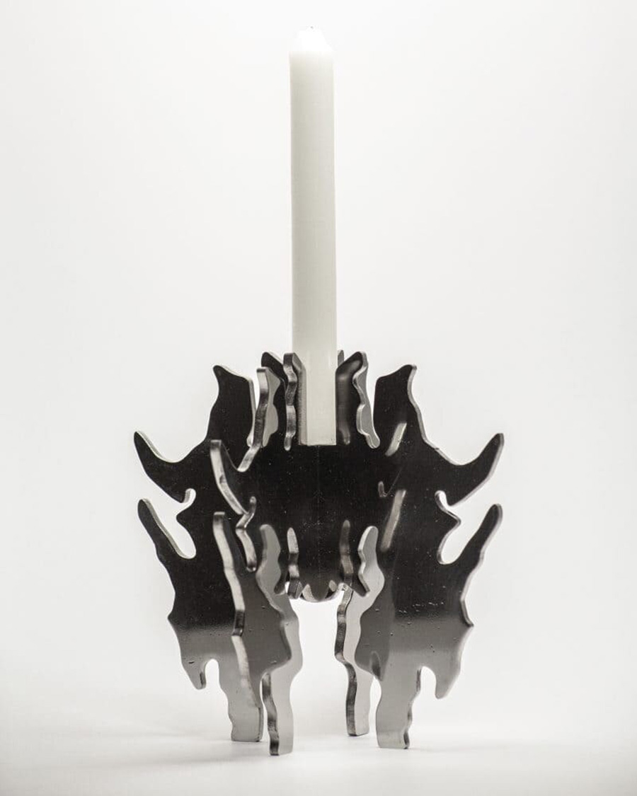 В галерее SAMPLE представлен объект от Primitive Buro, в основе которого лежит идея трансформации. Подсвечник выполнен из четырехмиллиметровой нержавеющей стали. По задумке авторов, тающий воск не просто исчезает, а наслаивается на металл, превращая объект в постоянно меняющуюся скульптуру. Это подарок для эстетов, которые видят красоту в контролируемом хаосе и естественных процессах.