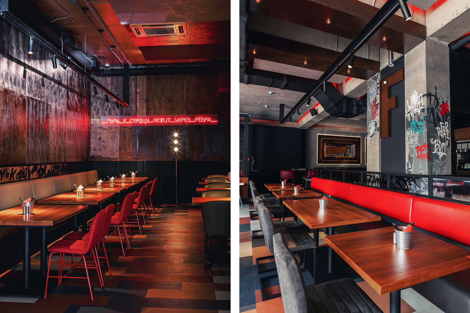 Ну, они же не первый день работают, у них в голове уже готовые форматы: в итальянском ресторане одно, в рыбном — другое. И по мясным ресторанам тоже есть определённые стандарты: причём необязательно мужские, тяжеловесные конструкции и дерево — сейчас можно полегче делать, и это более мощный тренд. Но всё, конечно, зависит от помещения. Если потолки 6 метров, это одна концепция, а если 2,5 метра — совершенно другая. Иногда входишь в помещение — и уже понятно, что ничего практически и придумывать не надо: в голове моментально рождается готовый дизайн-проект.