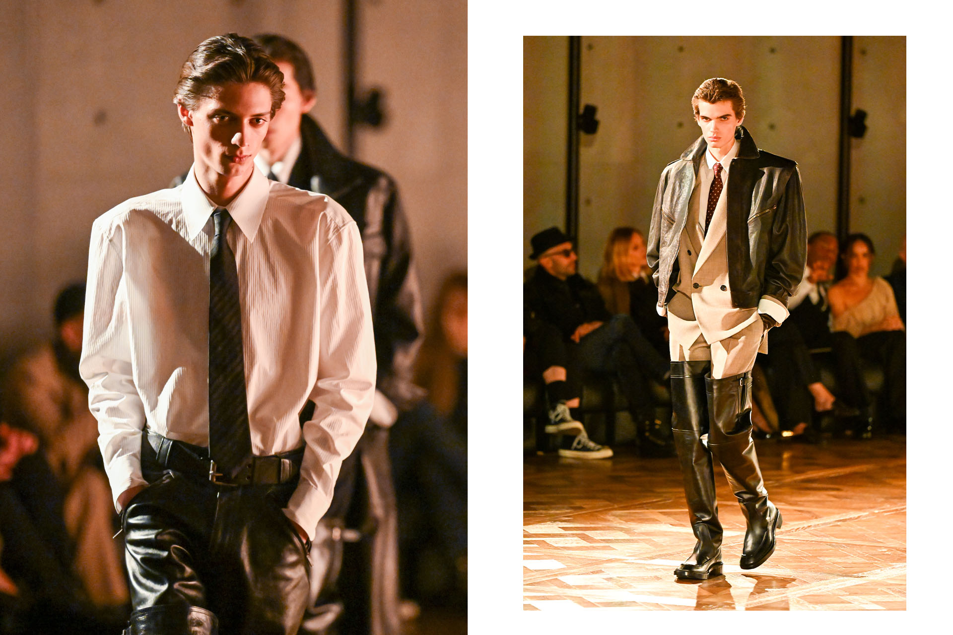 Экстремальное похудение без физической нагрузки (читай — без напряга) нередко трактуют как заботу о себе в период угрожающих новостей из внешнего мира. Взрывная популярность «Оземпика» и его аналогов привела к тому, что бодипозитив практически исчез из соцповестки — а заодно и с подиумов. В комментариях к материалу авторитетной журналистки Кэти Хорин о новой мужской коллекции Saint Laurent пишут, что «фигуры уже не просто худые — они двумерные, это одежда для отсутствующего тела». Дословно то же можно сказать и про женские показы бренда.