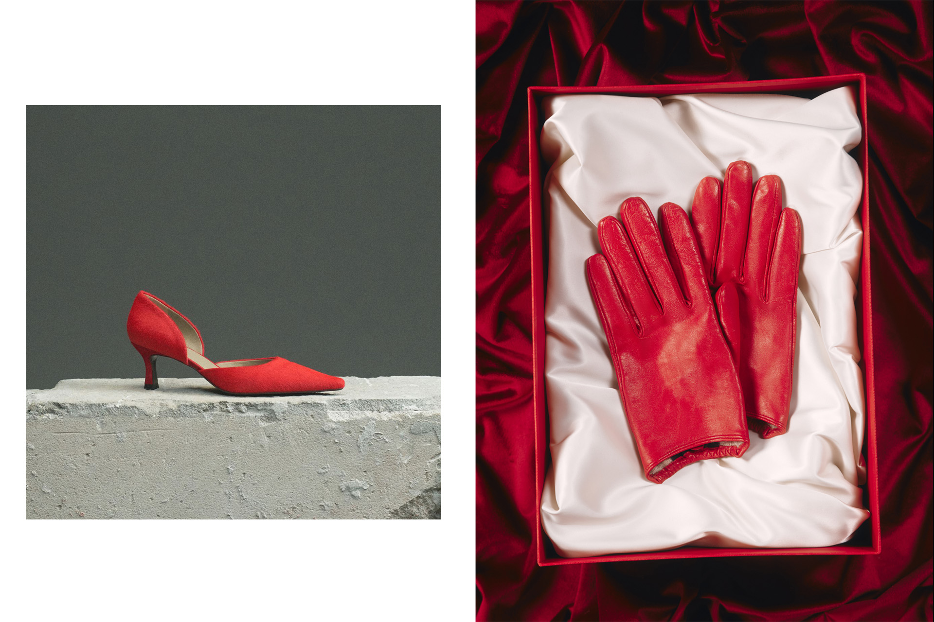 В палитре образов актрисы, преимущественно построенной на нейтральных оттенках, красный цвет часто становится завершающим штрихом. Она использует его избирательно, с хирургической точностью, превращая выразительный оттенок в кульминацию всего образа. Пара лакированных туфель, мягкий клатч или яркая помада в оттенке Russian Red — подобные детали (исключительно по отдельности, а не вместе) притягивают взгляд и добавляют характера даже самому сдержанному образу. Стоит отметить, что Терон в 99% случаев выбирает максимально уравновешенную палитру: белый, чёрный, серый, беж, тёмно-синий. А яркий цвет — красный — выступает скорее как приправа, благодаря чему удаётся избежать ассоциации с «Блондинкой в красном» (отсылка к «Матрице»).