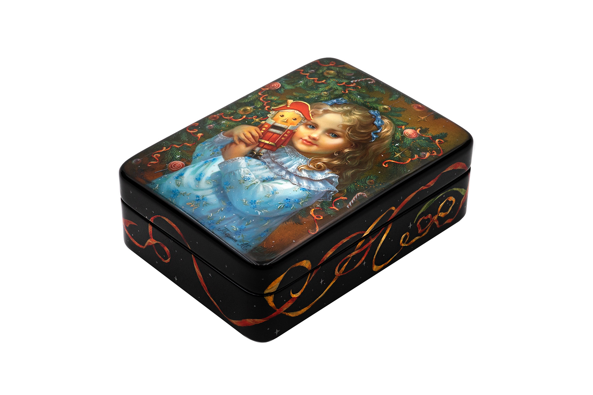 Созданная вручную по старинным технологиям, шкатулка продолжает традицию лаковой миниатюры, которая на фабрике бережно сохраняется с 1795 года. Многоступенчатый процесс – от трёх до шести месяцев – делает каждую шкатулку уникальной: с индивидуальным номером, фирменным знаком и контролем художественного совета. Визуальные сюжеты отличаются глубиной, живописной выразительностью и редкой долговечностью материала.