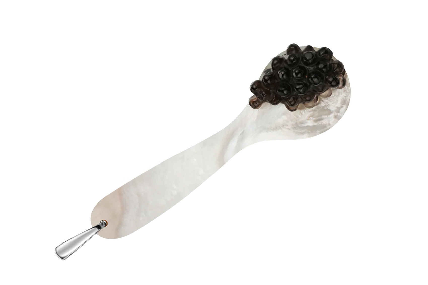 Ювелирная ложечка с чёрной икрой из коллекции «Гедонизм» бренда Dzhanelli – пример интеллигентной иронии в ювелирном формате. Объект балансирует между аристократической роскошью и воспоминаниями о советском детстве и превращает гастрономический символ в украшение. Натуральные камни добавляют материальности и глубины. Это не просто украшение, а высказывание с характером и чувством юмора. Такой подарок всегда считывается как знак особого внимания и культурного контекста.