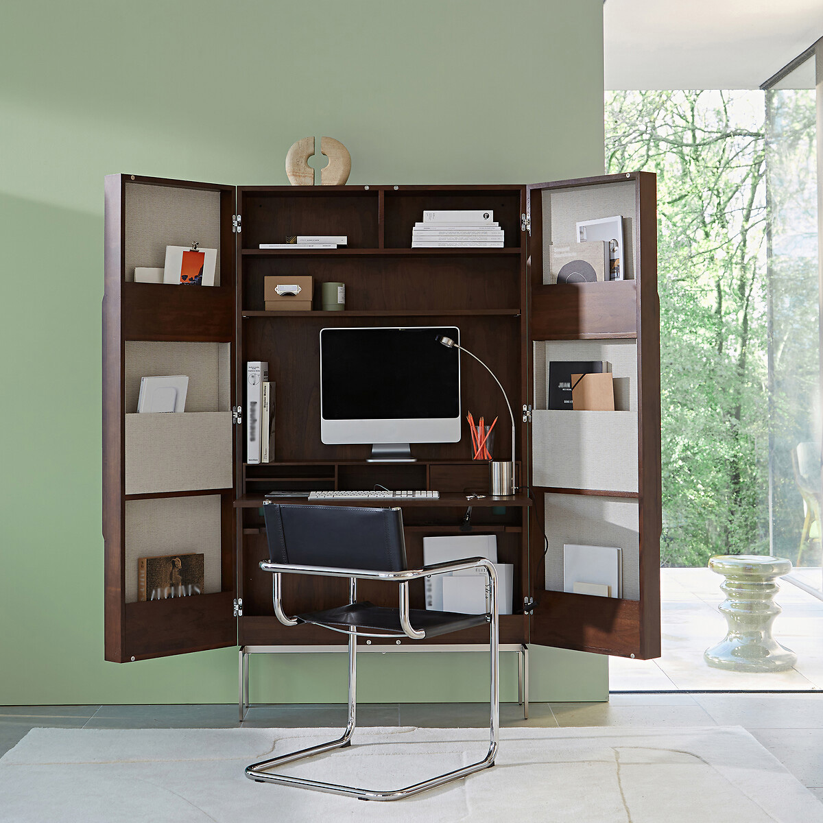Что касается кабинета, новый его тип на самом деле не требует уже не только отдельной комнаты, но даже стационарного стола: есть у тебя ноутбук, Wi-Fi — для работы вполне достаточно. Главное — предусмотреть такой сценарий заранее: понять, куда ты с этим ноутбуком будешь садиться, где будет комфортнее работать.