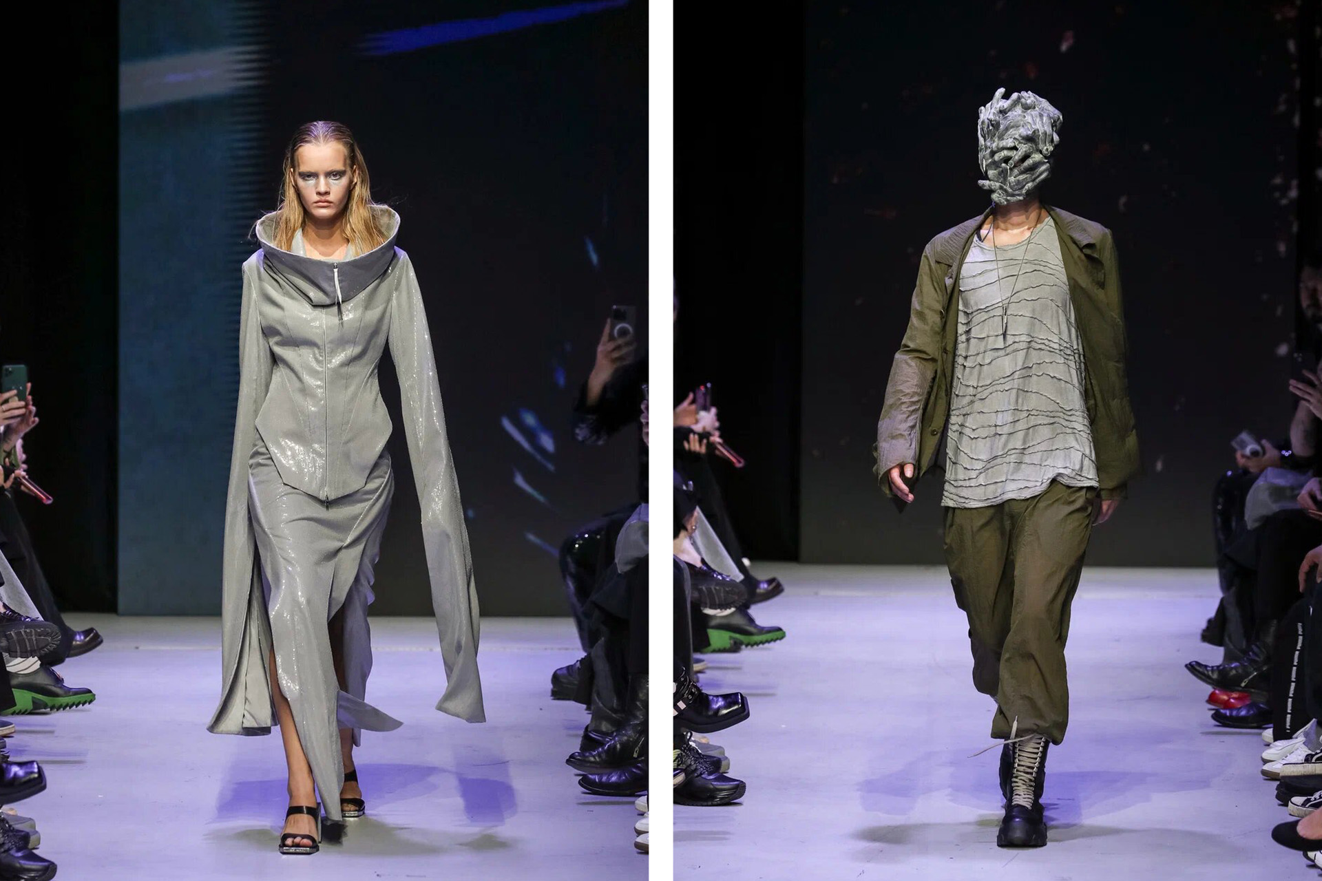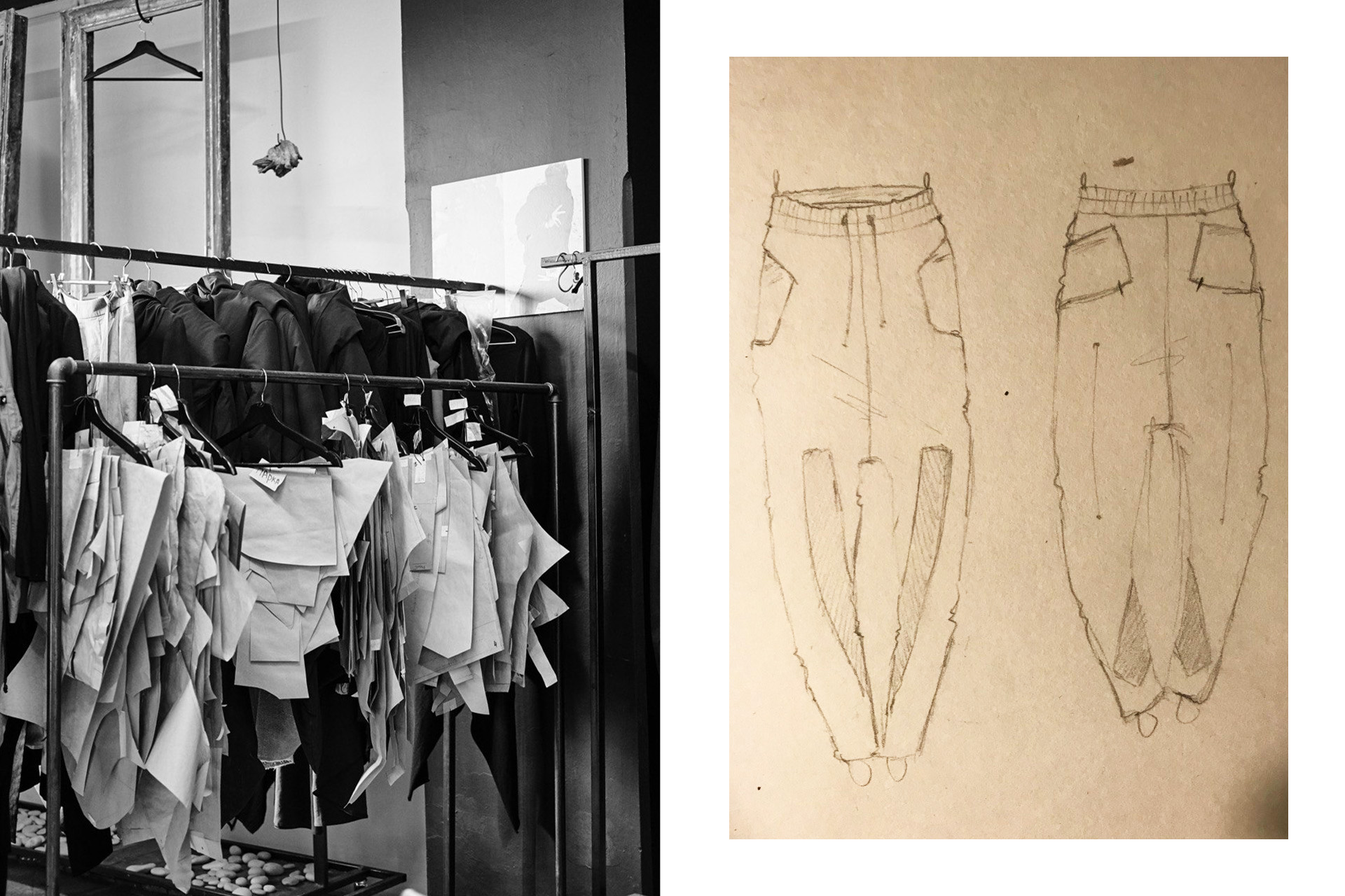 Я бы не назвал нашу одежду футуристической, она в первую очередь про комфорт. Проще объяснить через то, как создаётся одежда. Мы очень редко рисуем эскизы. Вся база — форма, подбор ткани, фактур — разрабатывается на манекене или на теле. Потом мы переносим её в макет и готовим изделие. Вещь рассказывает нам, как мы себя в ней чувствуем, откликается ли она нам визуально, комфортно ли в ней. Одежда — это скафандр, в котором мы проводим большую часть жизни. Если мы чувствуем себя в нём скованно или некомфортно, то это сильно отражается на нас — как мы себя в этой одежде проявляем, как на нас реагируют люди. Всё это закладывается на примерке. Есть изделия, которые нам не откликаются, и тогда мы решаем, что в мире не должно быть этой вещи.
