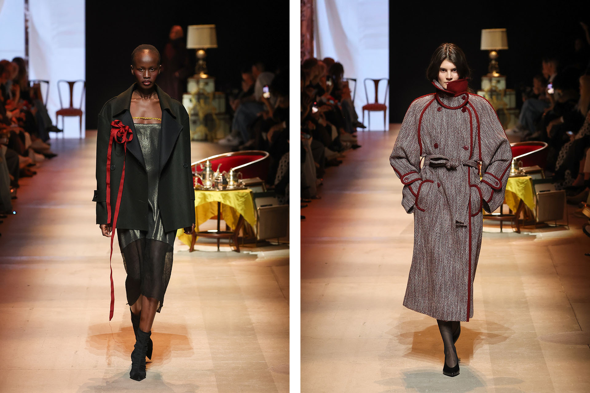 Слева: любимый образ Сергея Сороки с показа «Дочь денди» Soroka on Course Фото: Виктор Бойко / пресс-служба Московской недели моды