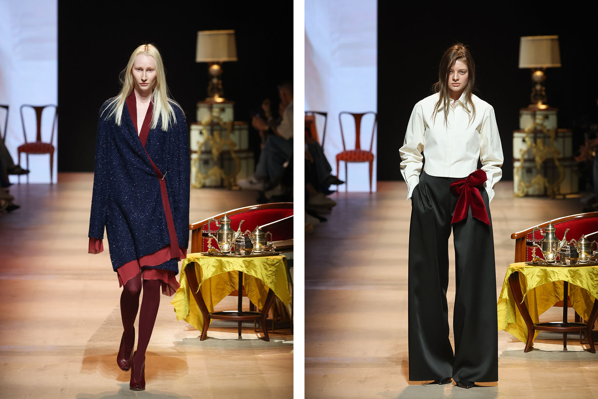 Мне кажется, что в целом в этом показе было много игры на контрасте шика и нестарательности, расслабленности.