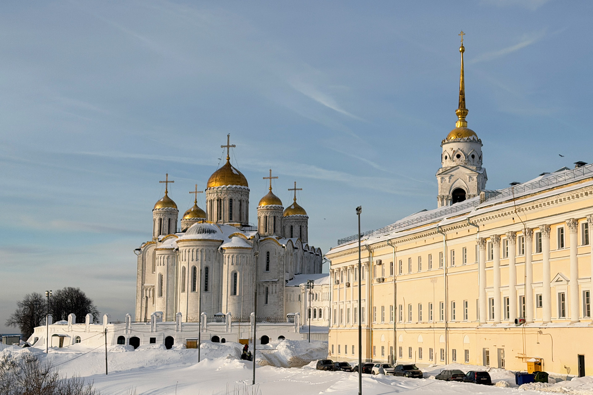 Успенский собор во Владимире — средоточие сакральной и культурной силы Древней Руси. Первоначально он был возведён в 1158–1160 годах по указу князя Андрея Боголюбского, который стремился создать в своей новой столице не только политический, но и духовный центр. Строительство велось из белого камня — материала, который стал символом владимирской школы архитектуры и позднее вдохновил многие другие проекты в регионе. Уже тогда храм поражал своей масштабностью и монументальной чистотой линий, став одним из первых примеров зрелого русского церковного зодчества.