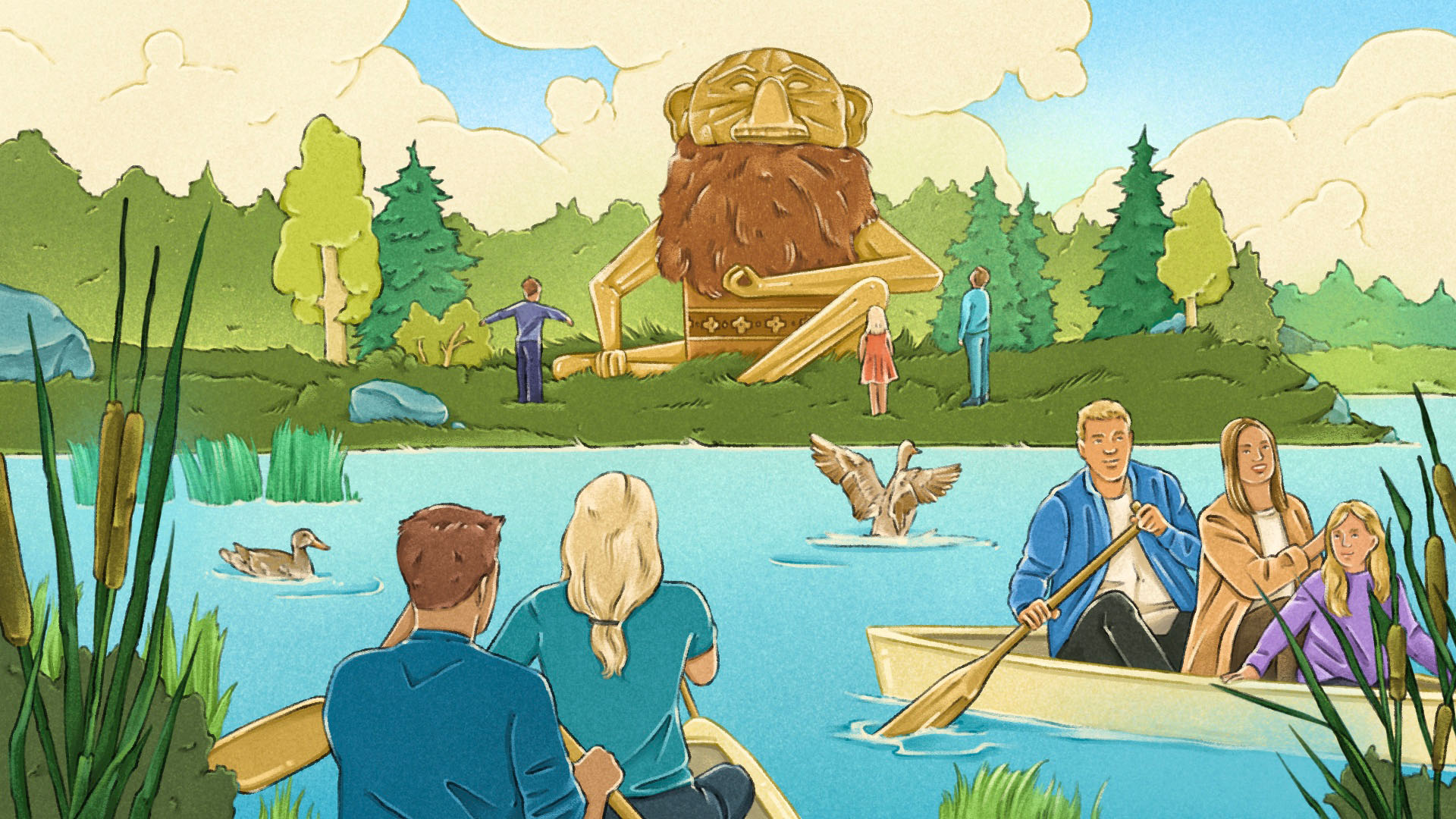 «Я узнала об алангасарах из удмуртских сказок и легенд. Это великаны, которые, по преданиям, жили на территории Удмуртии и сформировали её рельеф: где ступят — там овраг появляется, где отряхнут ногу от прилипшей земли — холм вырастает. А наш пруд по форме как раз очень похож на огромный след».