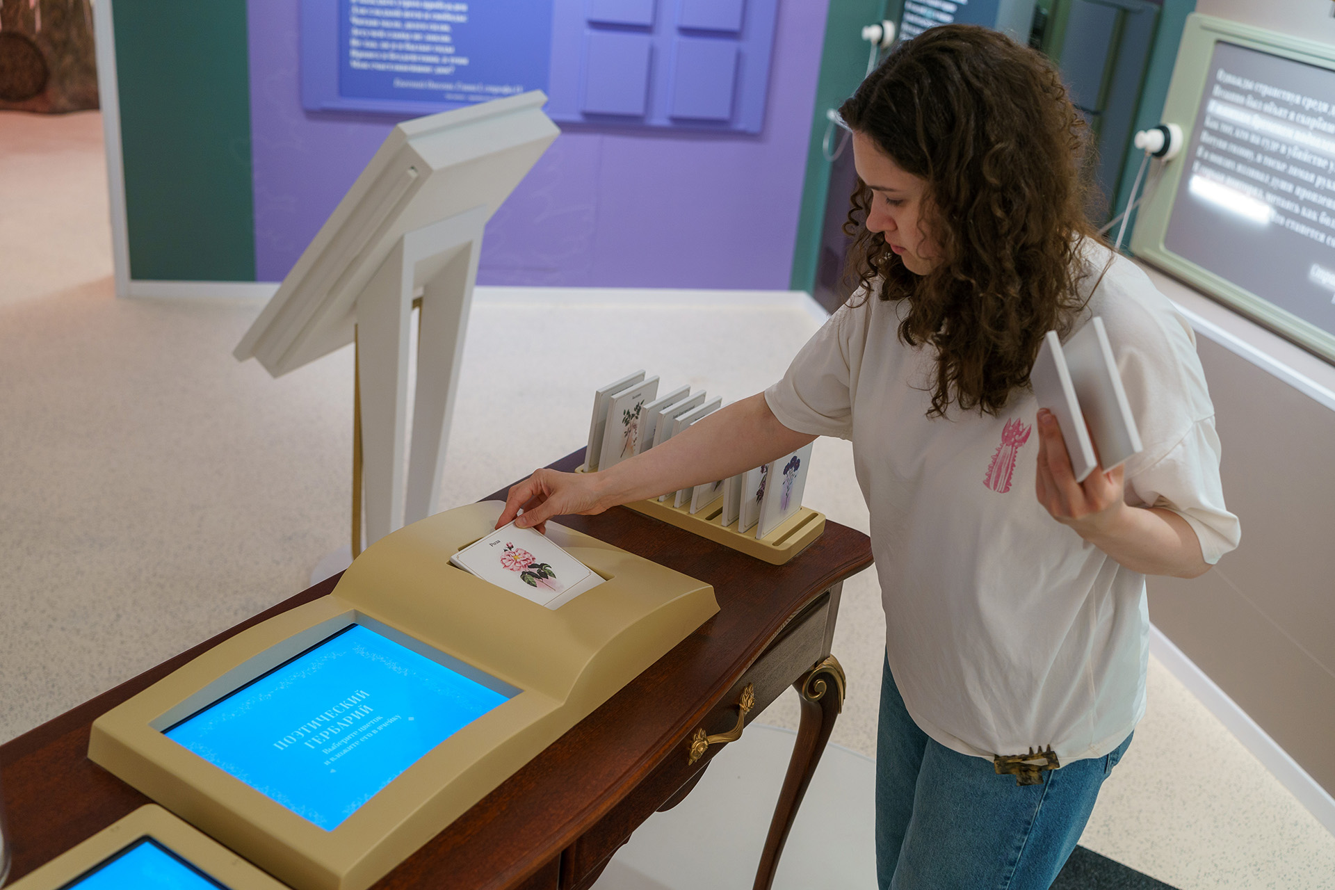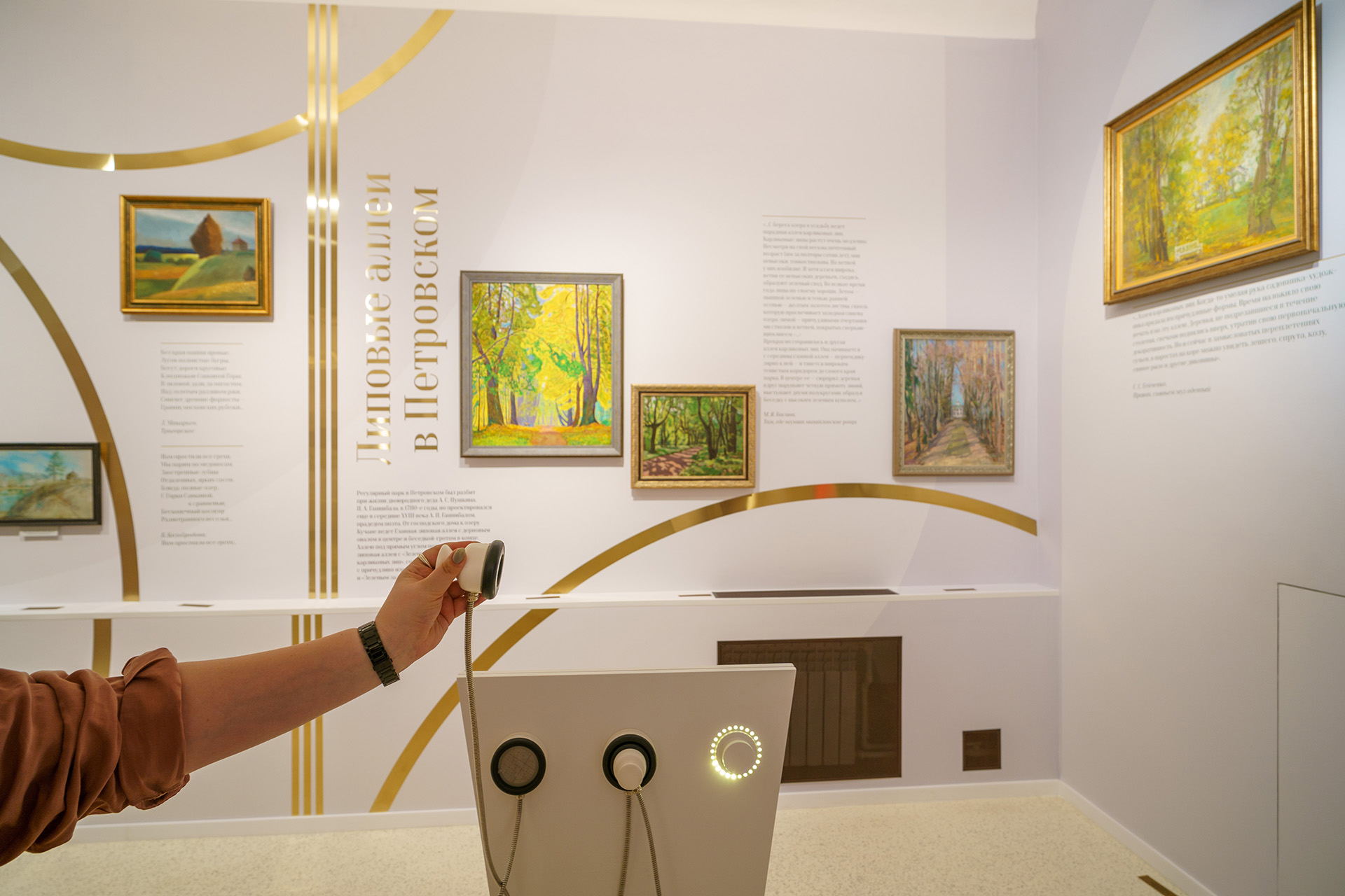 Интерактивные решения экспозиции апеллируют ко всем органам чувств и включают как визуальные объекты, так и тактильные, обонятельные и звуковые. Гости могут прикоснуться к текстурам, символизирующим природные элементы, ощутить ароматы лесной хвои и цветущих трав, услышать шелест листьев и пение птиц, которые словно перенеслись сюда из пушкинских стихотворений. Куратор выставки Ольга Самсонова делится: