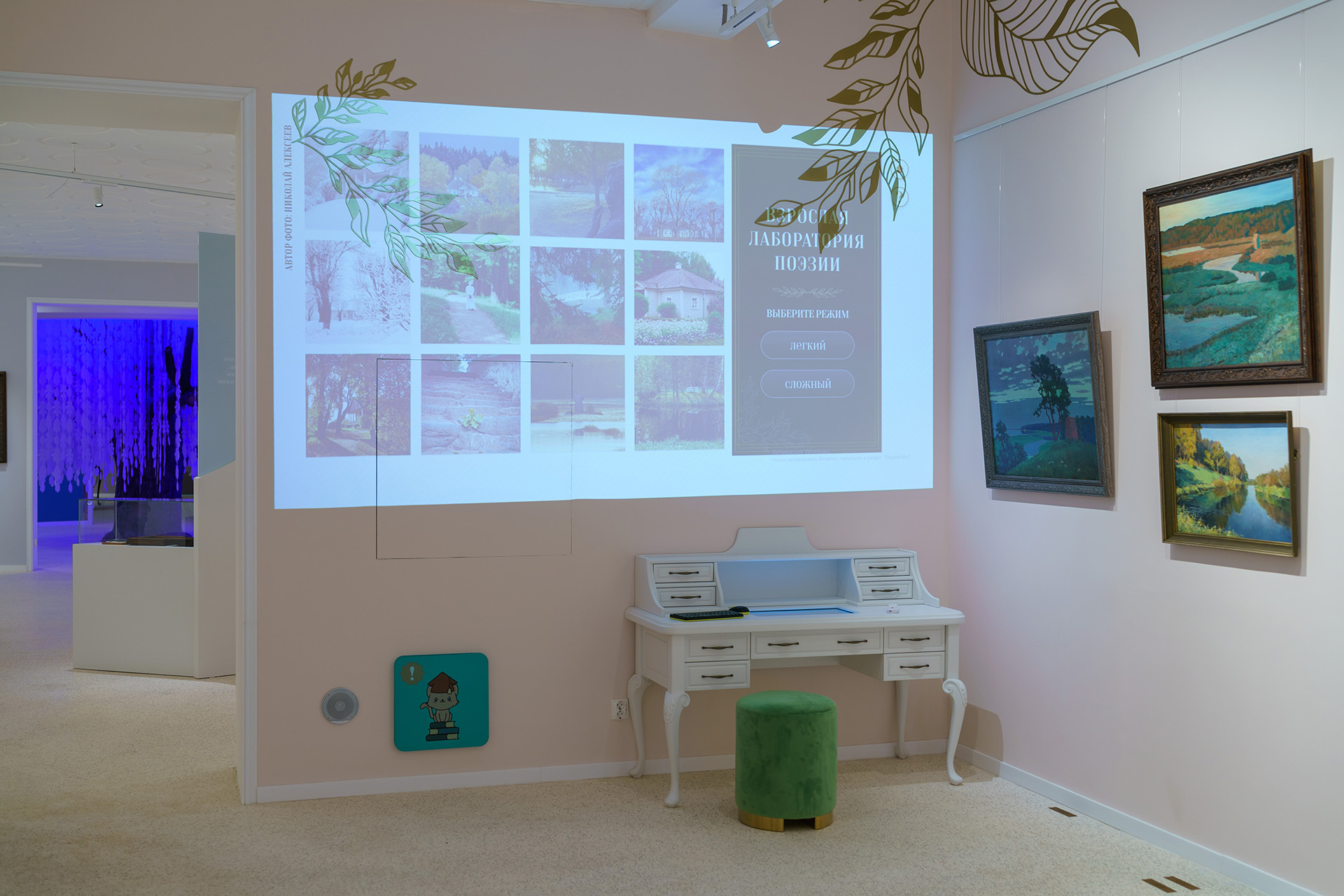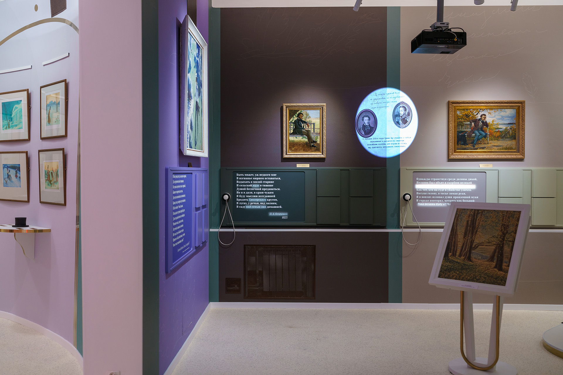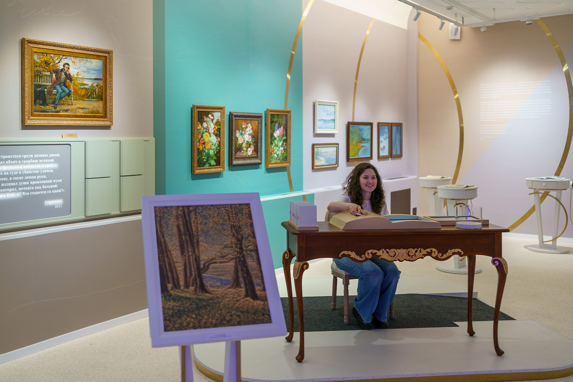 Едва переступив порог, посетитель оказывается в сердце пушкинской лирики. Здесь можно забыть о монотонных аудиогидах: в первом зале стихи поэта, подобранные под разные эмоциональные состояния, звучат в пространстве, обволакивая гостей то меланхолией осеннего вечера, то радостью весеннего утра. Стоит лишь слегка коснуться светящихся слов, и строки из произведений оживают прямо на глазах, тут же иллюстрируясь живописными полотнами.