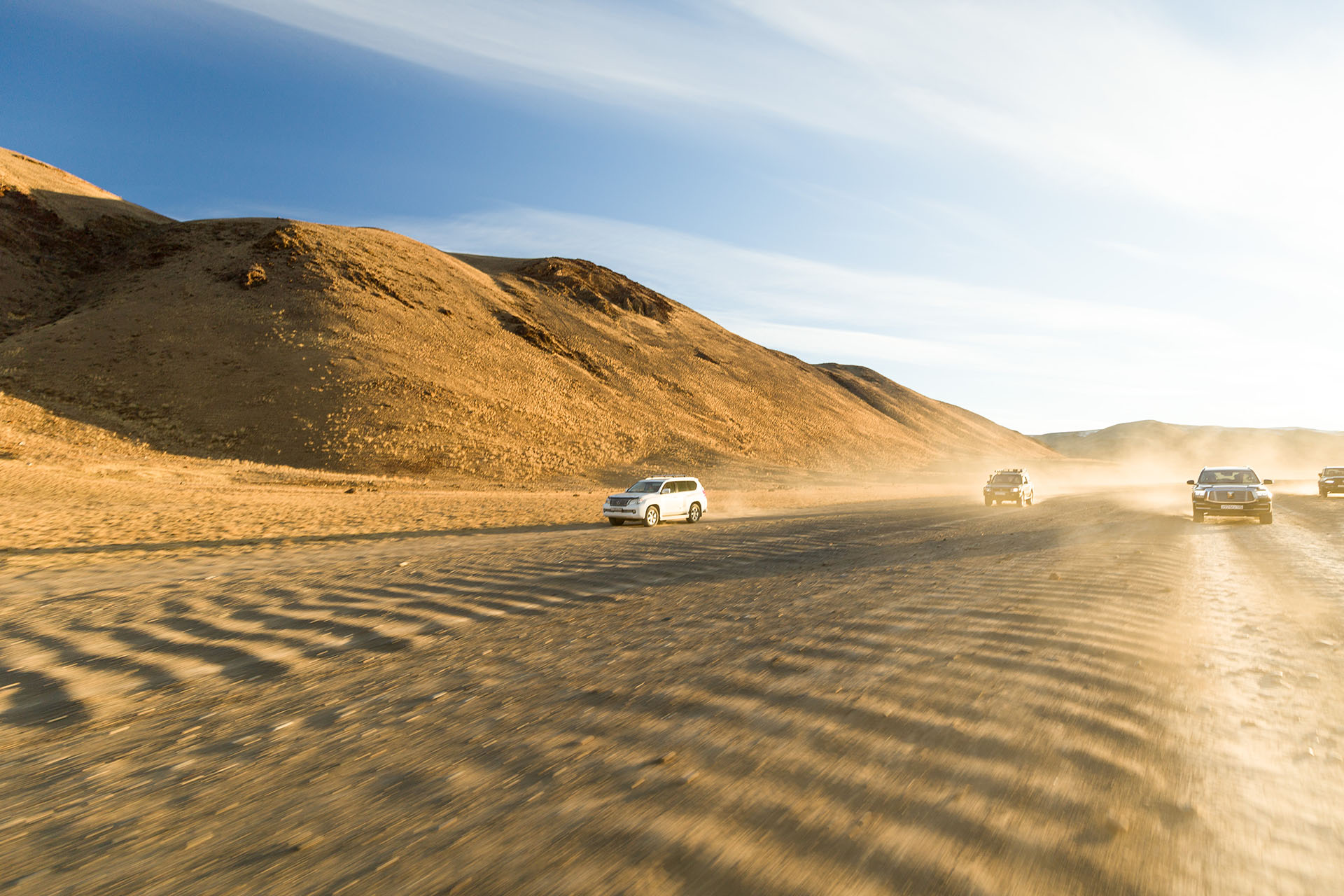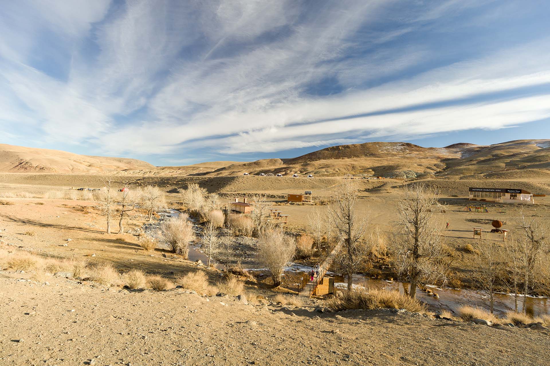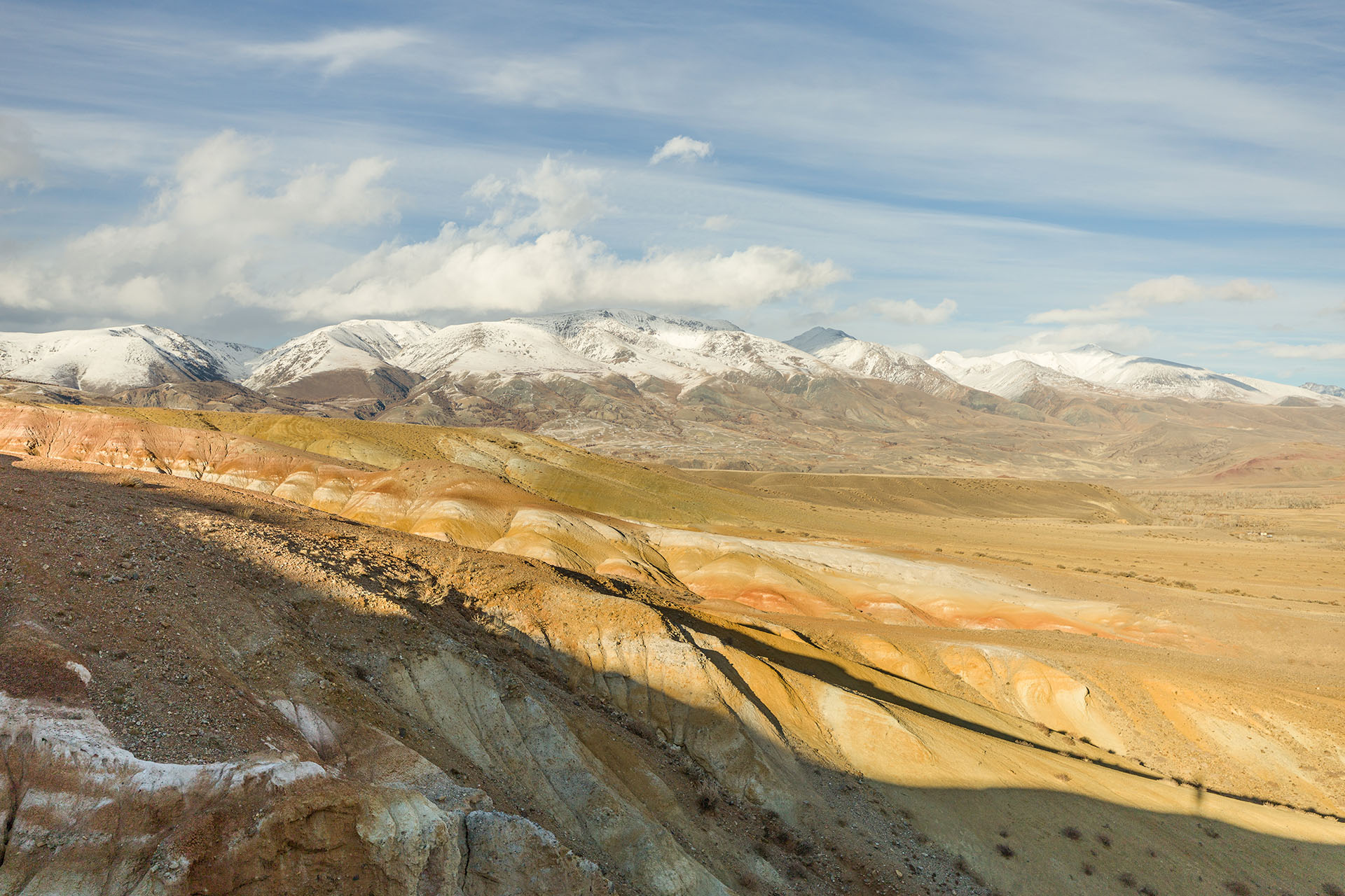 Сегодня нам предстоит самый длинный участок пути — 310 км до Марса и обратно. Марсом здесь называют место, расположенное в долинах рек Чаган-Узун и Кызыл-Чин. Цветные горы — терракотовые, красные, сиреневые, зелёные — когда-то были дном тёплого моря. Теперь здесь есть популярный у блогеров арт-объект, летний глэмпинг и место для трекинга разной сложности. Ехать лучше всего на подготовленной машине, наша колонна из полноприводных Tank 300 и 500 прошла тест бездорожьем. Устье высохшей реки, луга с невысокой, но стойкой травой, дающей сил скоту на долгую зиму. Красота дополняется суровостью климата: зимой здесь, в 60 км от границы с Монголией, температура опускается ниже 50 градусов, топят местные по-прежнему дровами, кизяком и углём. Промежуточная точка на маршруте — Гейзерное озеро, которое раньше называли Потаённым. Надёжно укрытое лиственницами, оно каждому рисует свою картину. Холодные родники, хаотично пробивающие толщу дна, смешивают глину, песок и ил, проявляя разные орнаменты. Местные уверены: что увидел, то и сбудется.