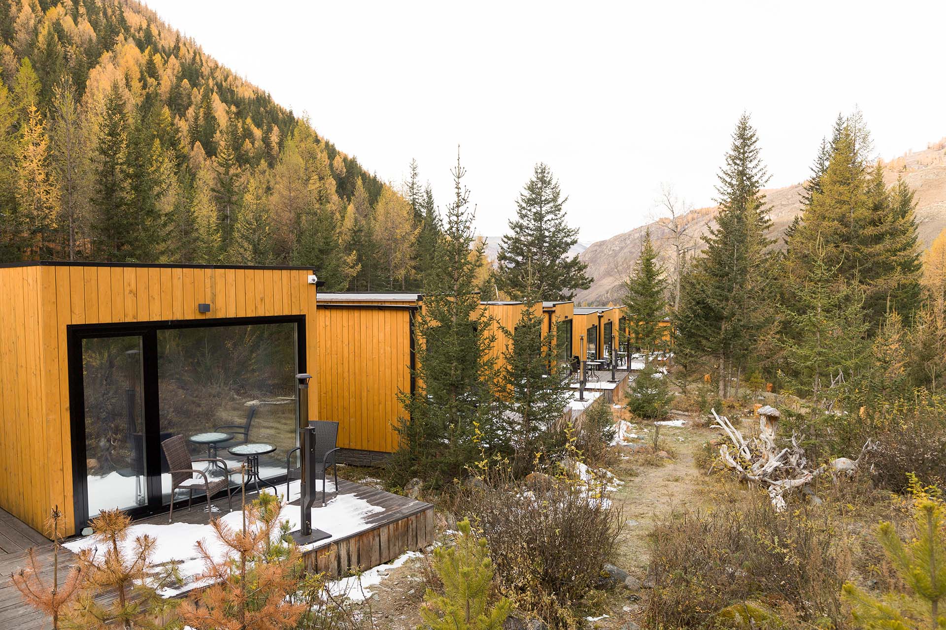 Ночуем в отеле Pinewood Resort and Spa, домики — зеркальные, виллы с панорамным окном и двухкомнатные Lumo Villas — стоят большей частью на высоком берегу, среди высоких сосен. Ниже бурлит сероватым потоком Катунь, усмиряет шероховатые камни, превращает их в гладкие валуны. Владелец Pinewood, как и Дмитрий, родом из Новосибирска. Помимо отличного без преувеличения ресторана «Бор» (один завтрак достоин отдельного упоминания), здесь можно попариться в русской или горной бане, побродить по тропе впечатлений. Есть и амбициозный план — построить термальный комплекс с самым большим в республике бассейном на открытом воздухе.